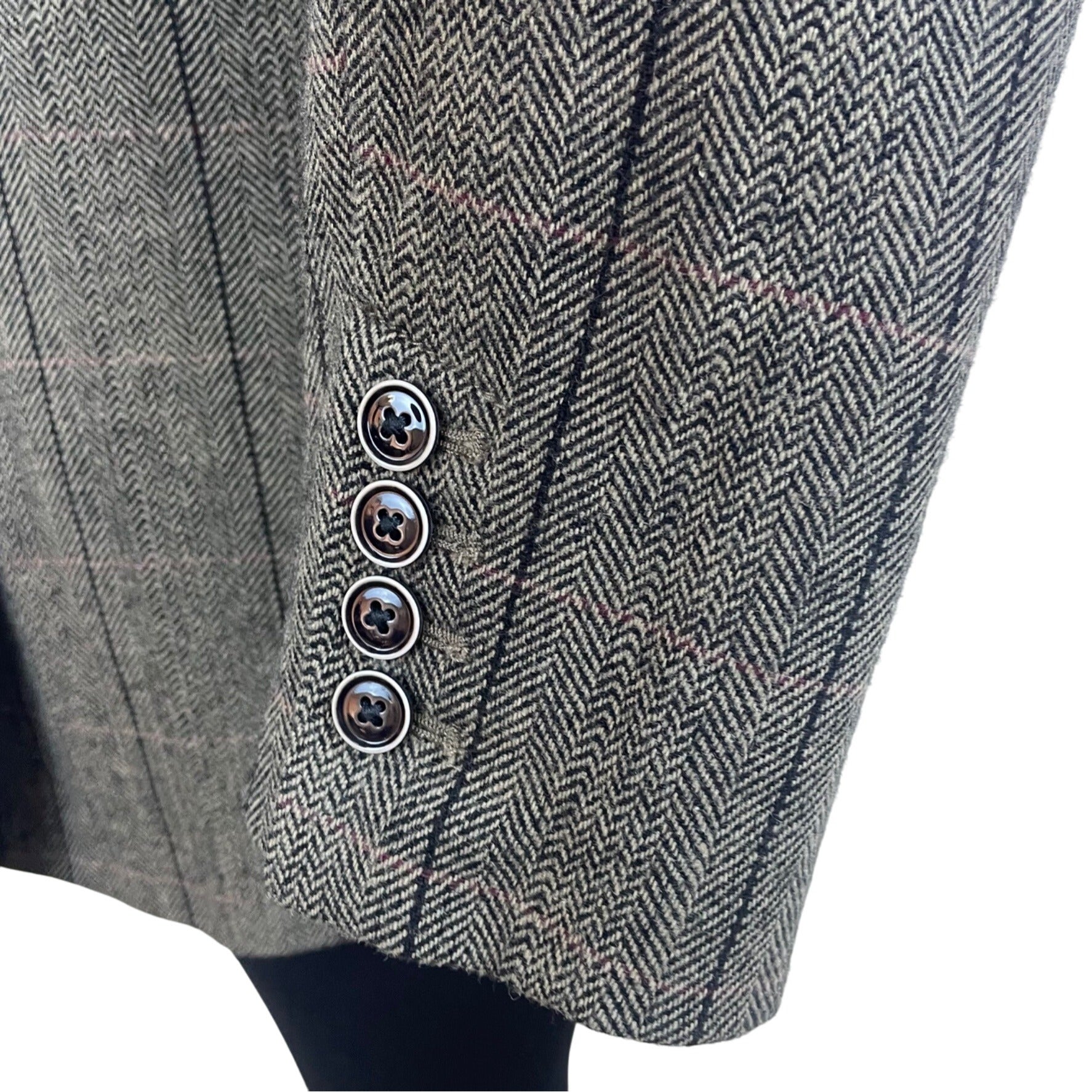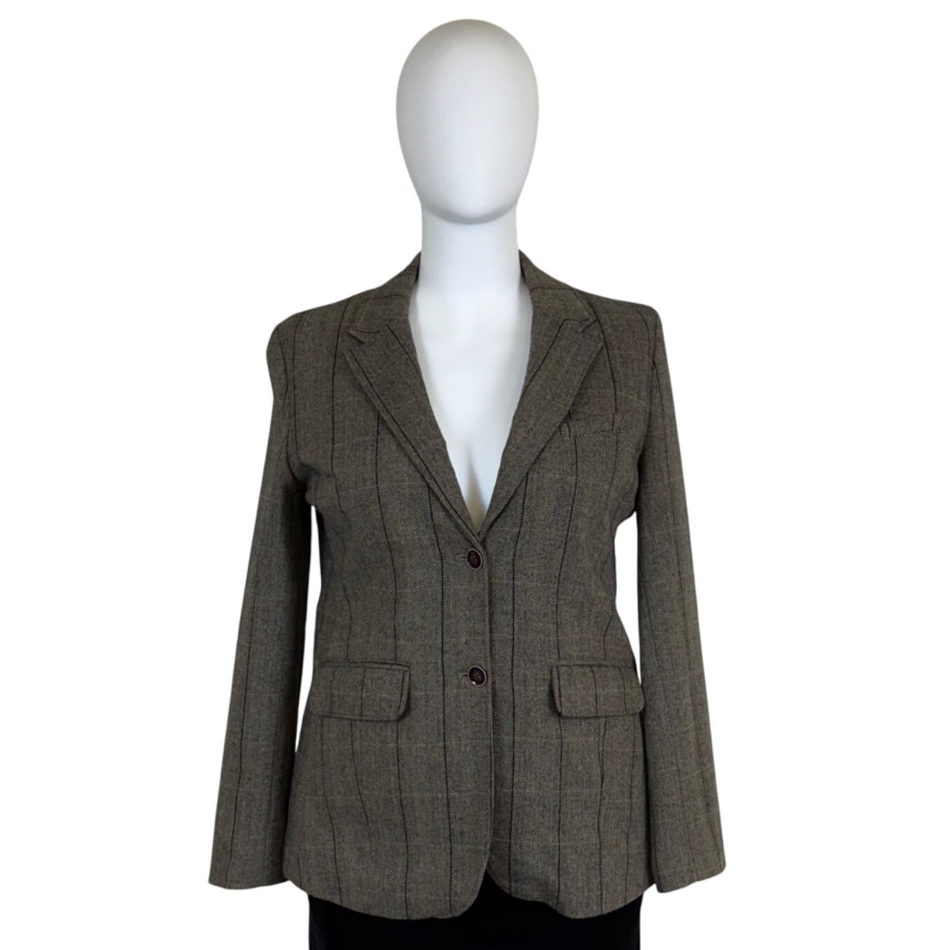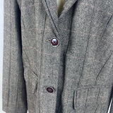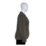 Eddie Bauer Women's Brown Herringbone Wool Blend Blazer Jacket Two Button Checkered Pattern Size T20
