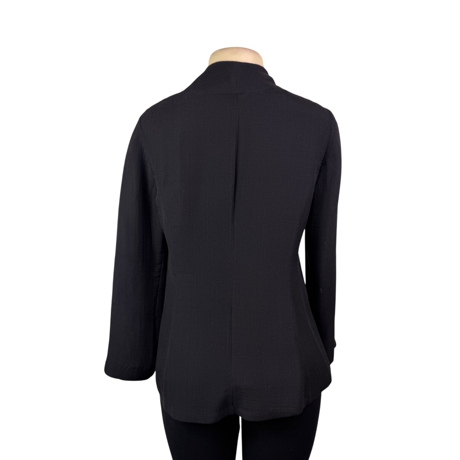 Eileen Fisher Womens Black Silk Open-Front Jacket Minimalist Design Sz XS