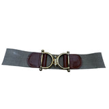 Elastic Belt Gold Accents Leather Trim Adjustable Beige & Brown Colorway S/M