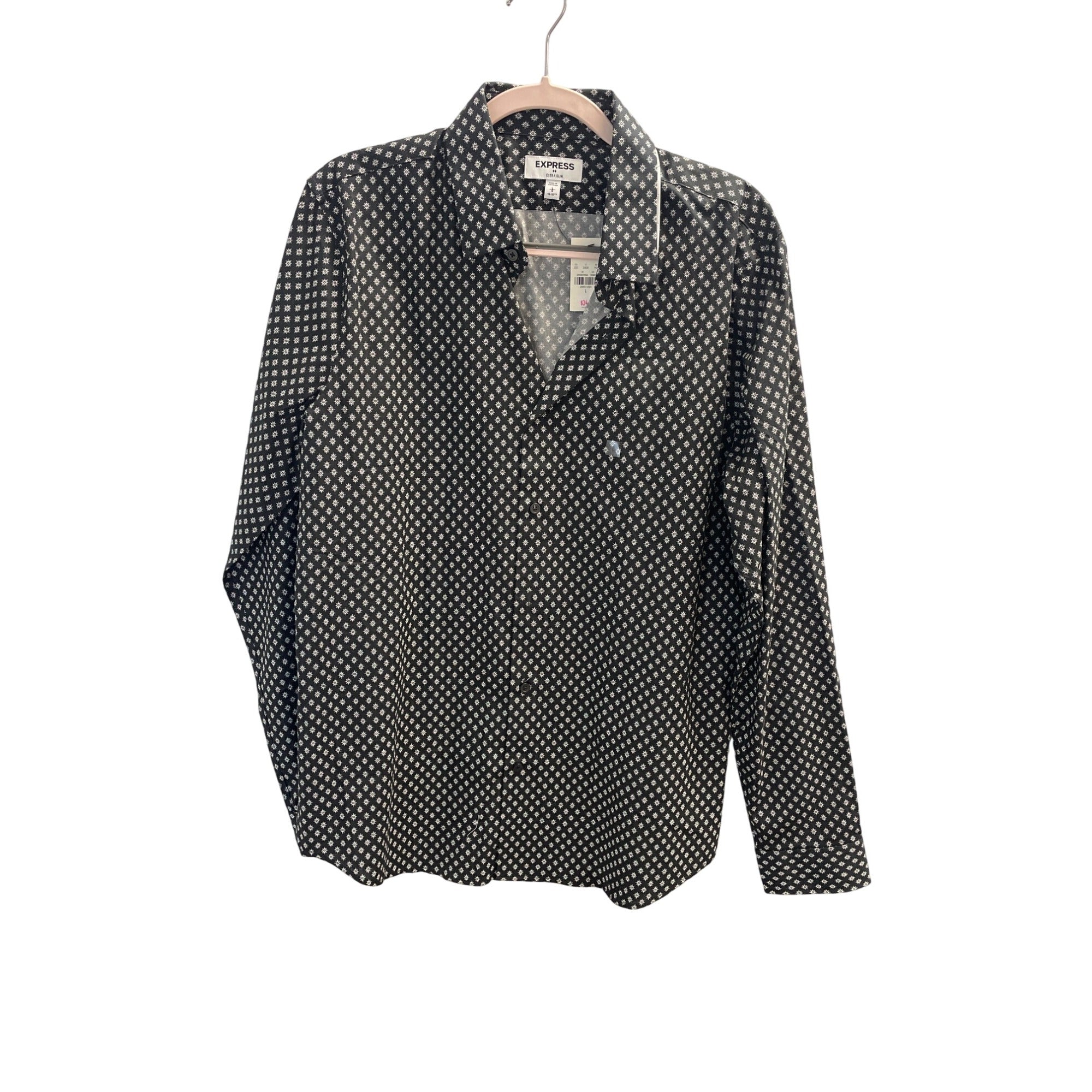 Express Mens Black & White Patterned Extra Slim Fit Shirt Size L