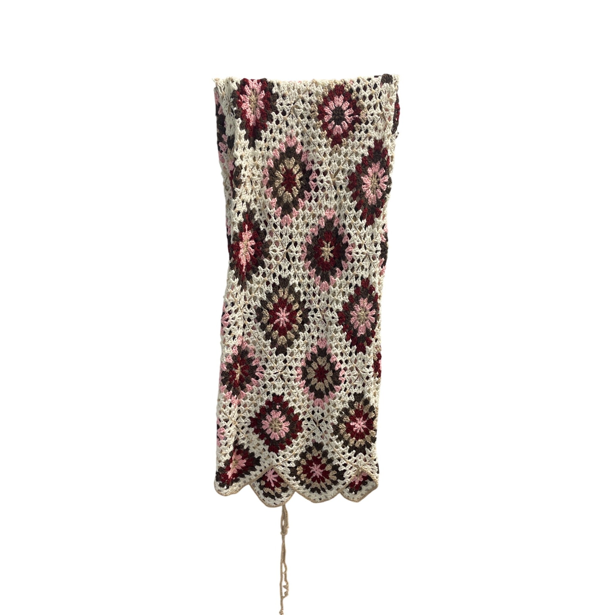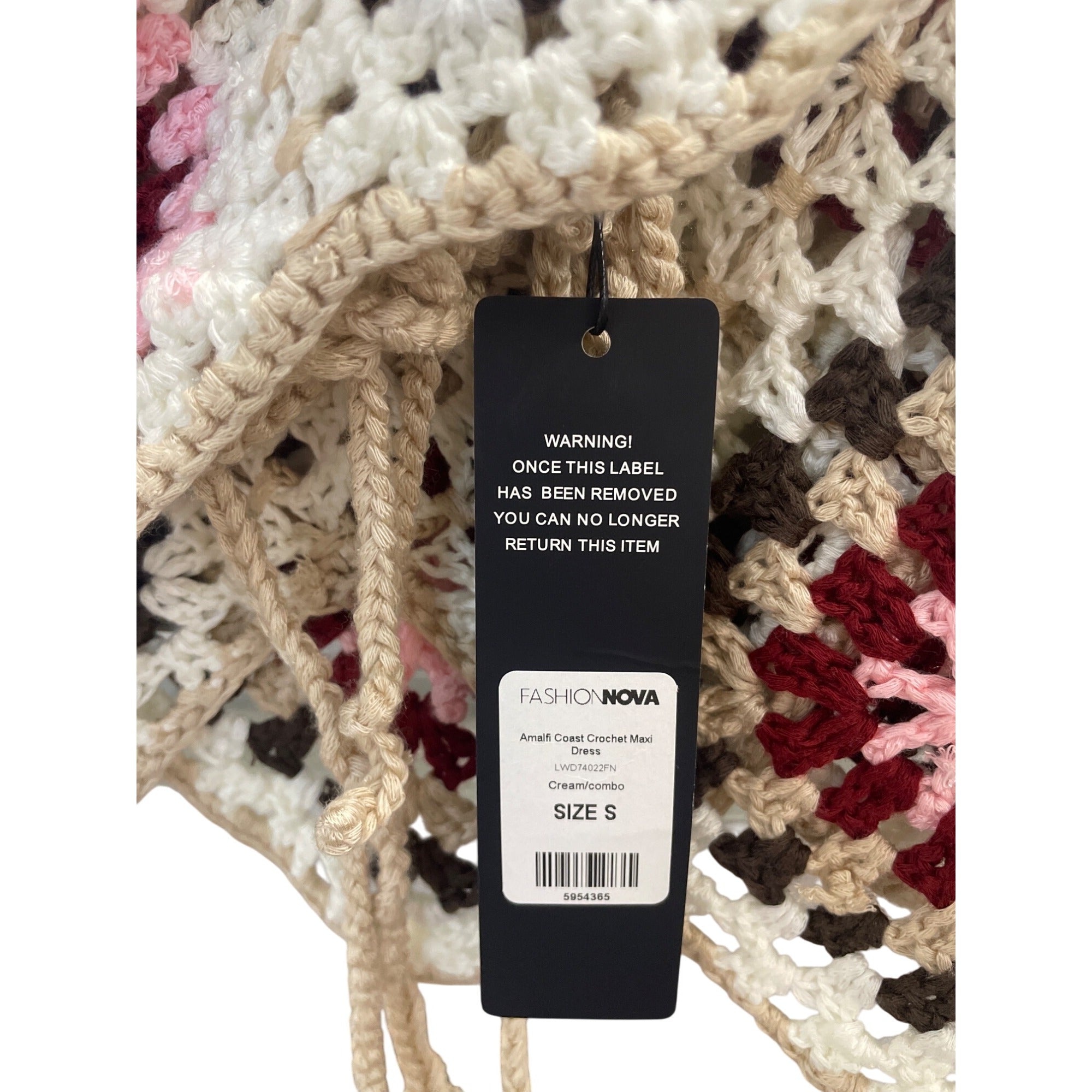 Fashion Nova Amalfi Coast Crochet Maxi Dress S Cream/Combo Daisy Pattern Stylish Womens
