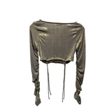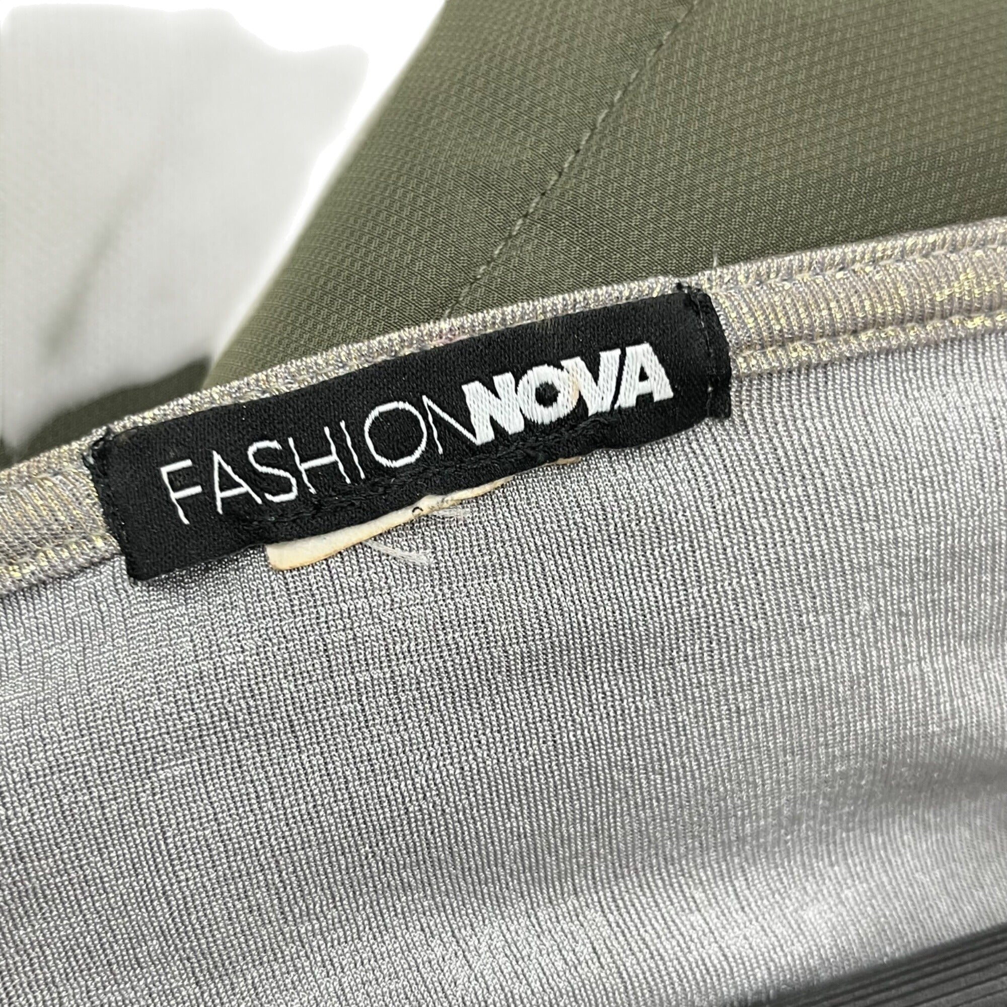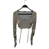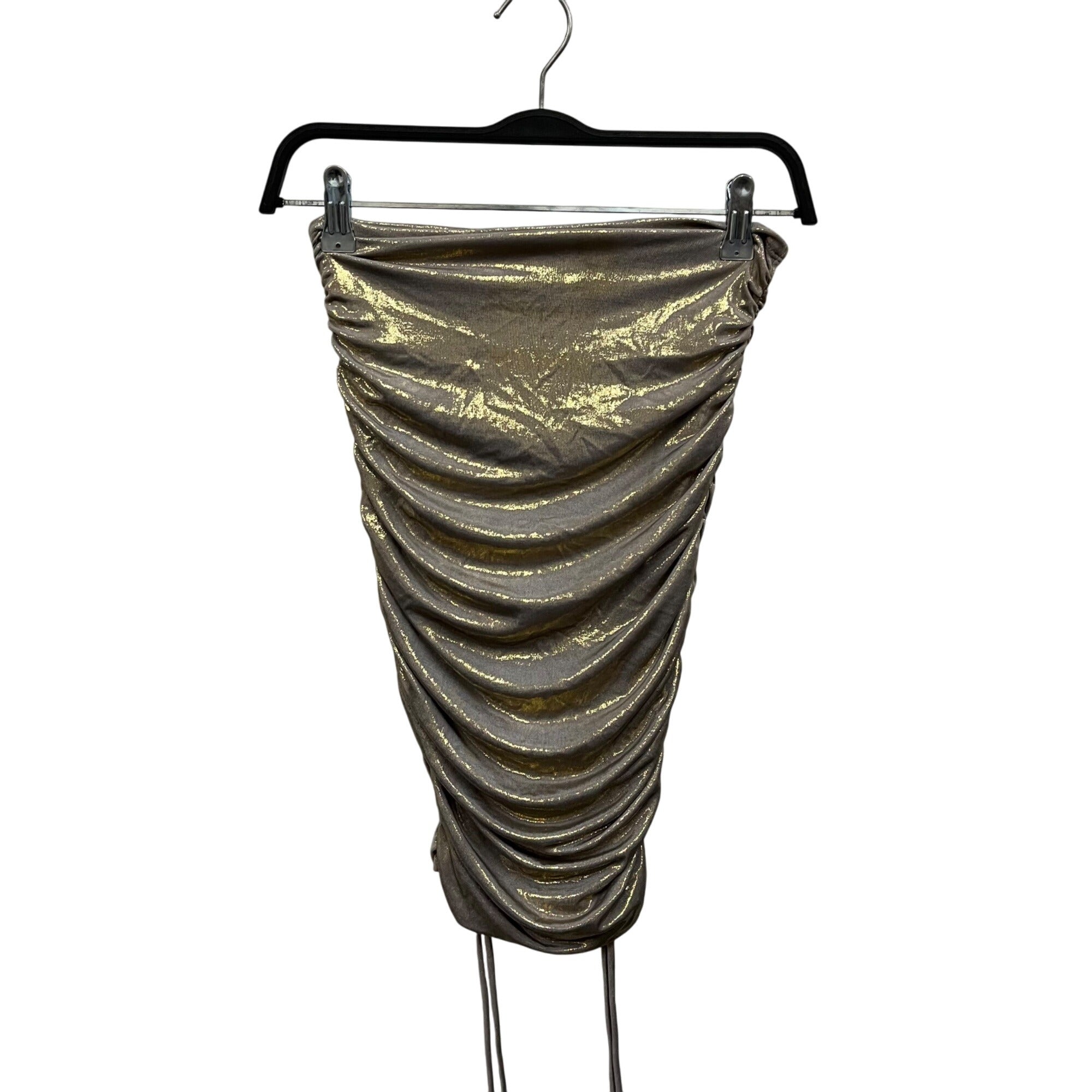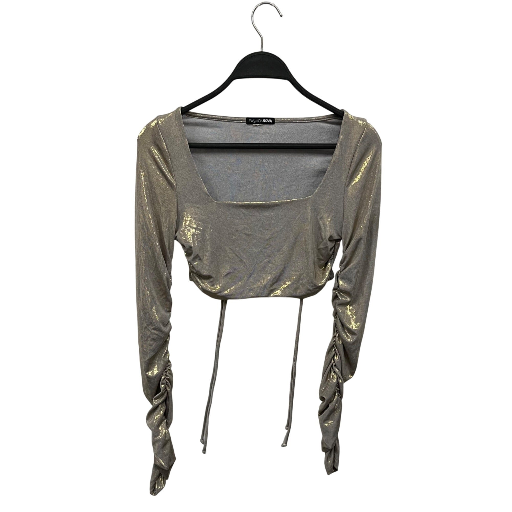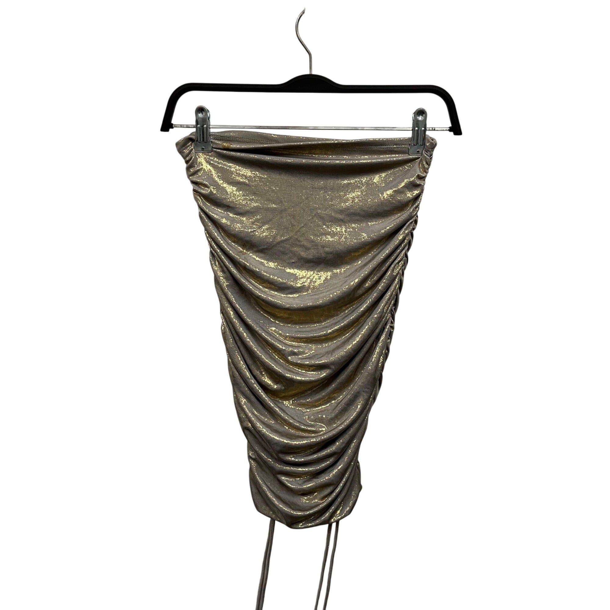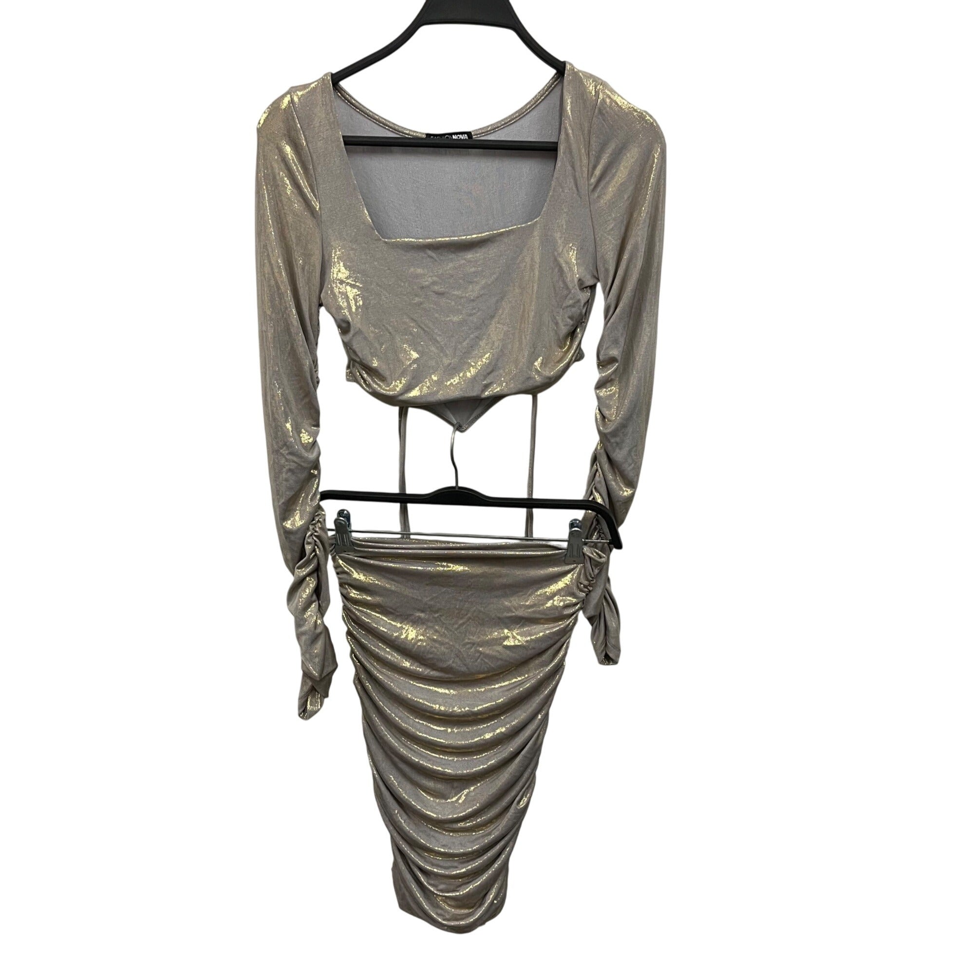 Fashion Nova Women Gold Metallic 2-Piece Long Sleeve Crop Top & Ruched Midi Skirt