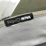 This Fashion Nova outfit includes a gold metallic crop top with a square neckline, ruched long sleeves, and adjustable drawstrings. Paired with a matching ruched midi skirt with side tuning drawstrings, the shimmering material exudes a chic and sleek finish for a standout look.