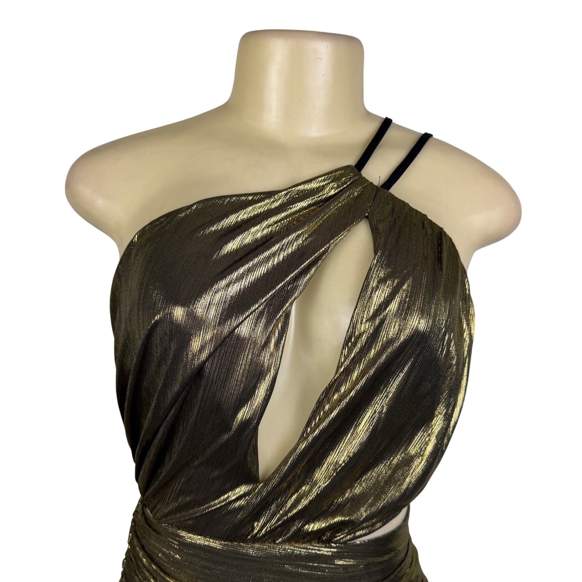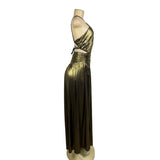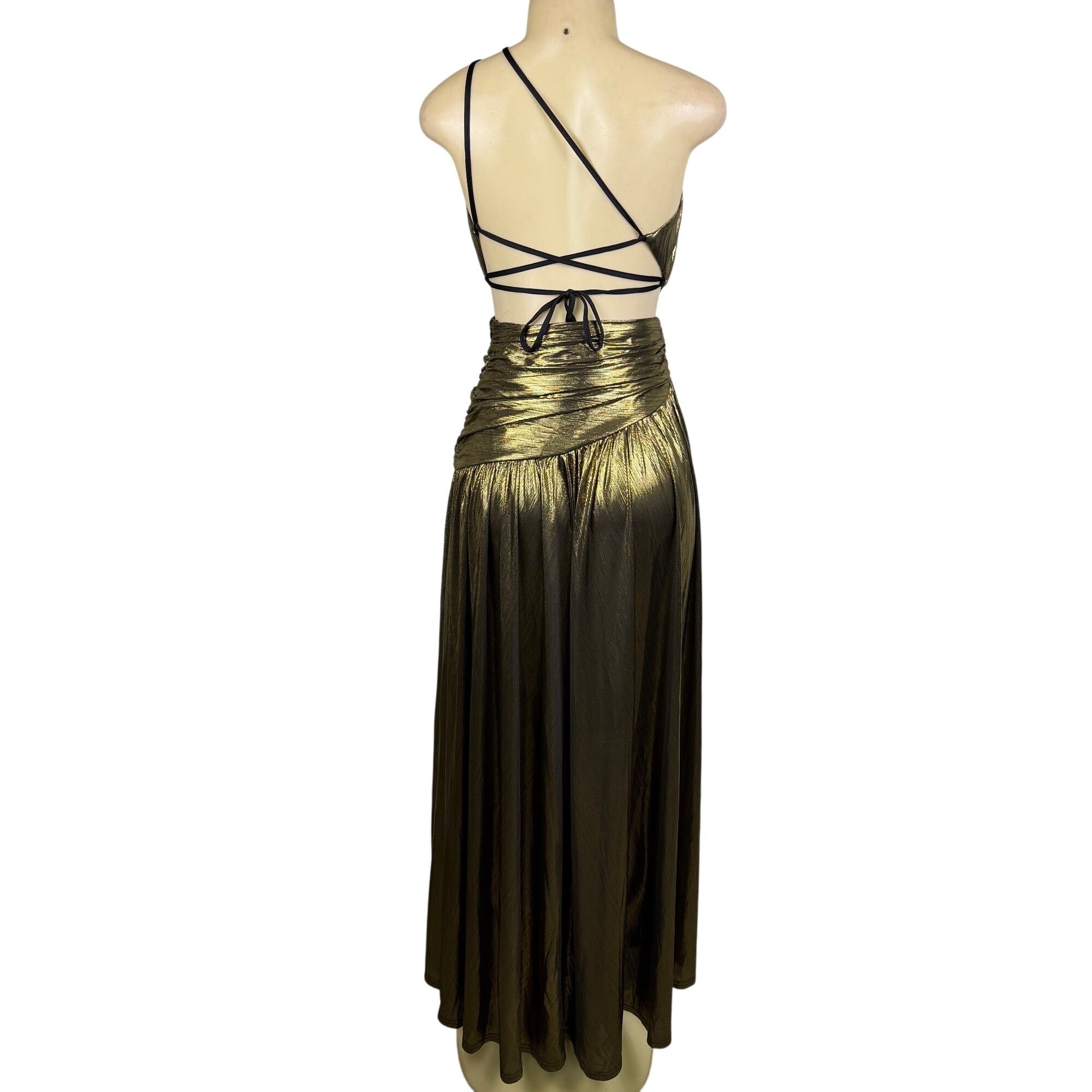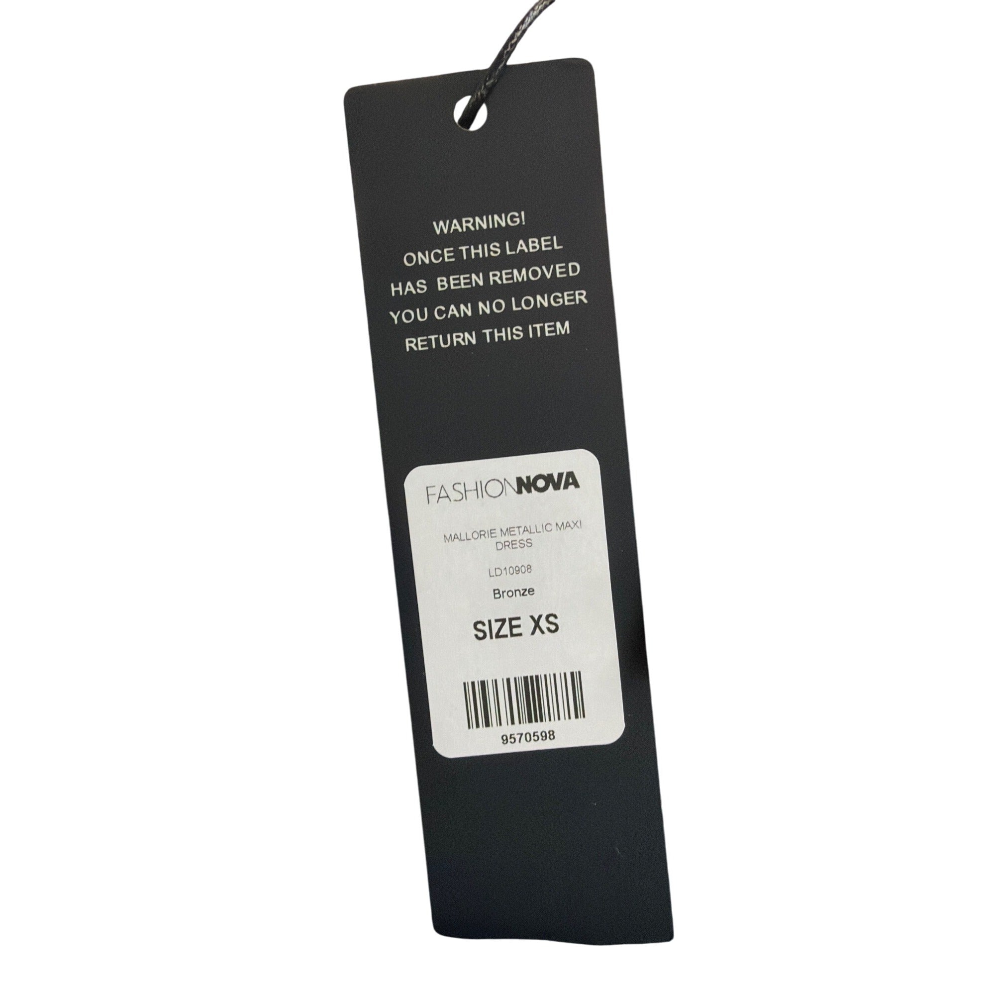 Fashion Nova Womens Gold Metallic Maxi Dress Criss-Cross Back Straps Size XS
