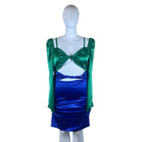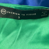 Fashion To Figure Green & Blue Women's Cutout Mini Dress With Long Sleeves Sz 2