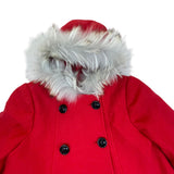 Fayuan Girl's Red Double Breasted Hooded Coat Real Fur Trim Jacket