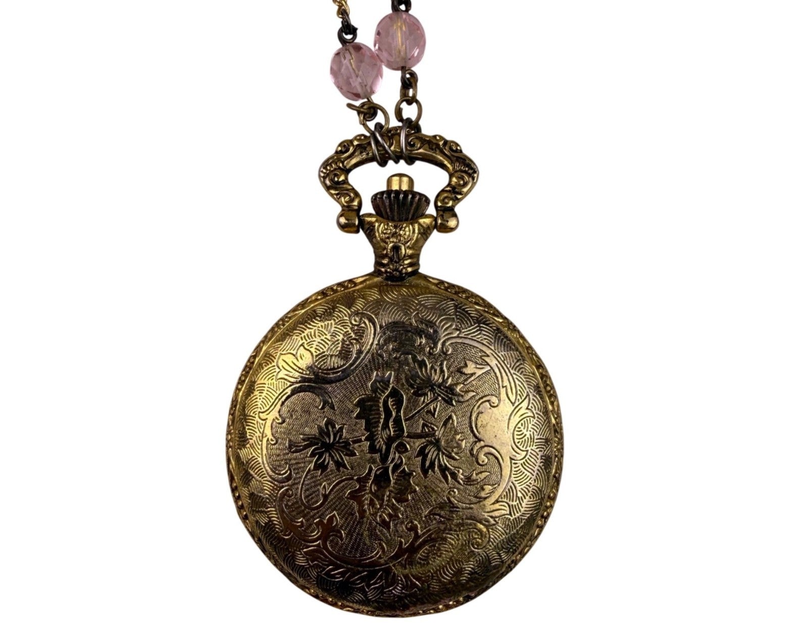 Ferarro Womens Gold Tone Metal Pocket Watch Necklace Quartz Japan Movement