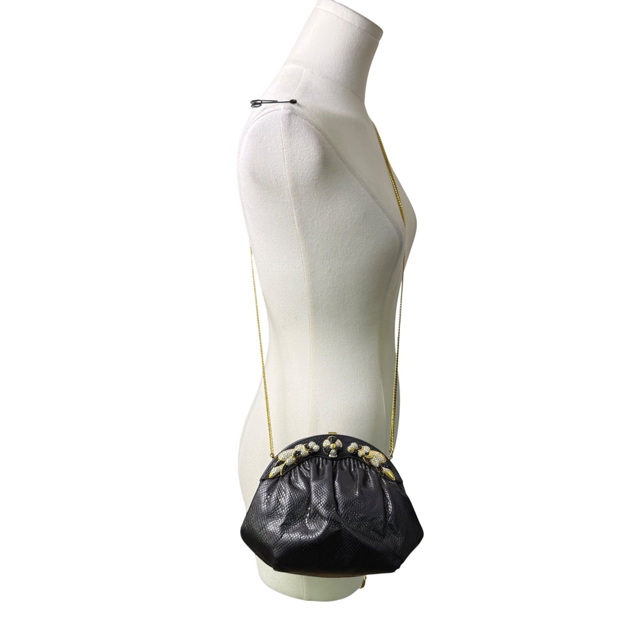 Finesse La Mode Black Leather Rhinestone Embellished Evening Clutch With Strap