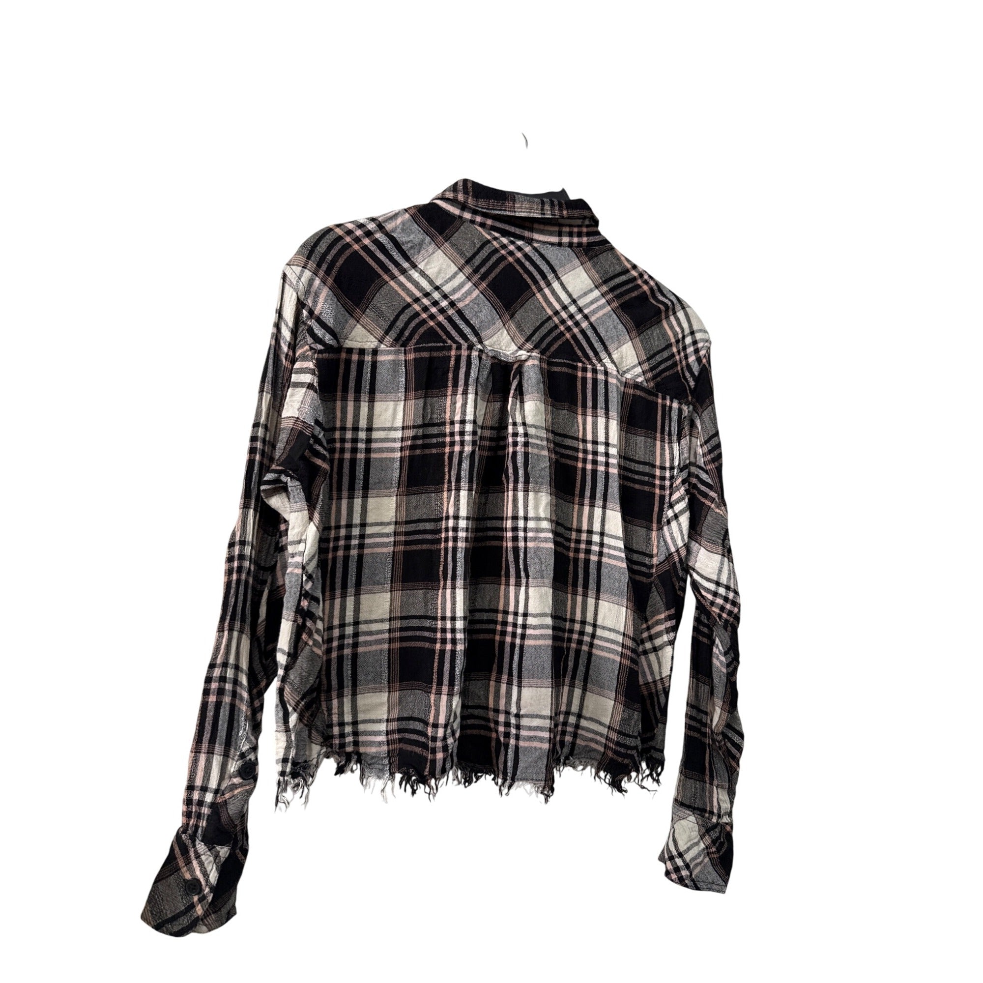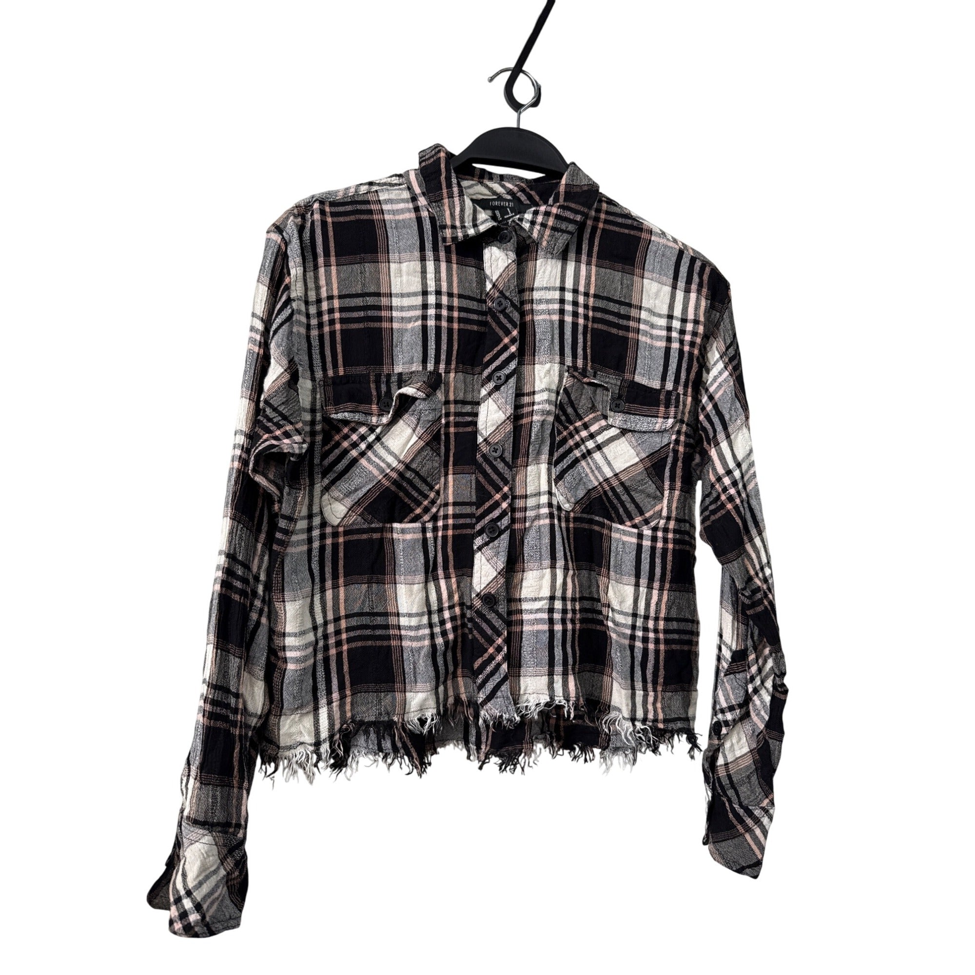 Forever 21 Womens Black Multi Cotton/Polyester Plaid Long Sleeve Frayed Hem Shirt S
