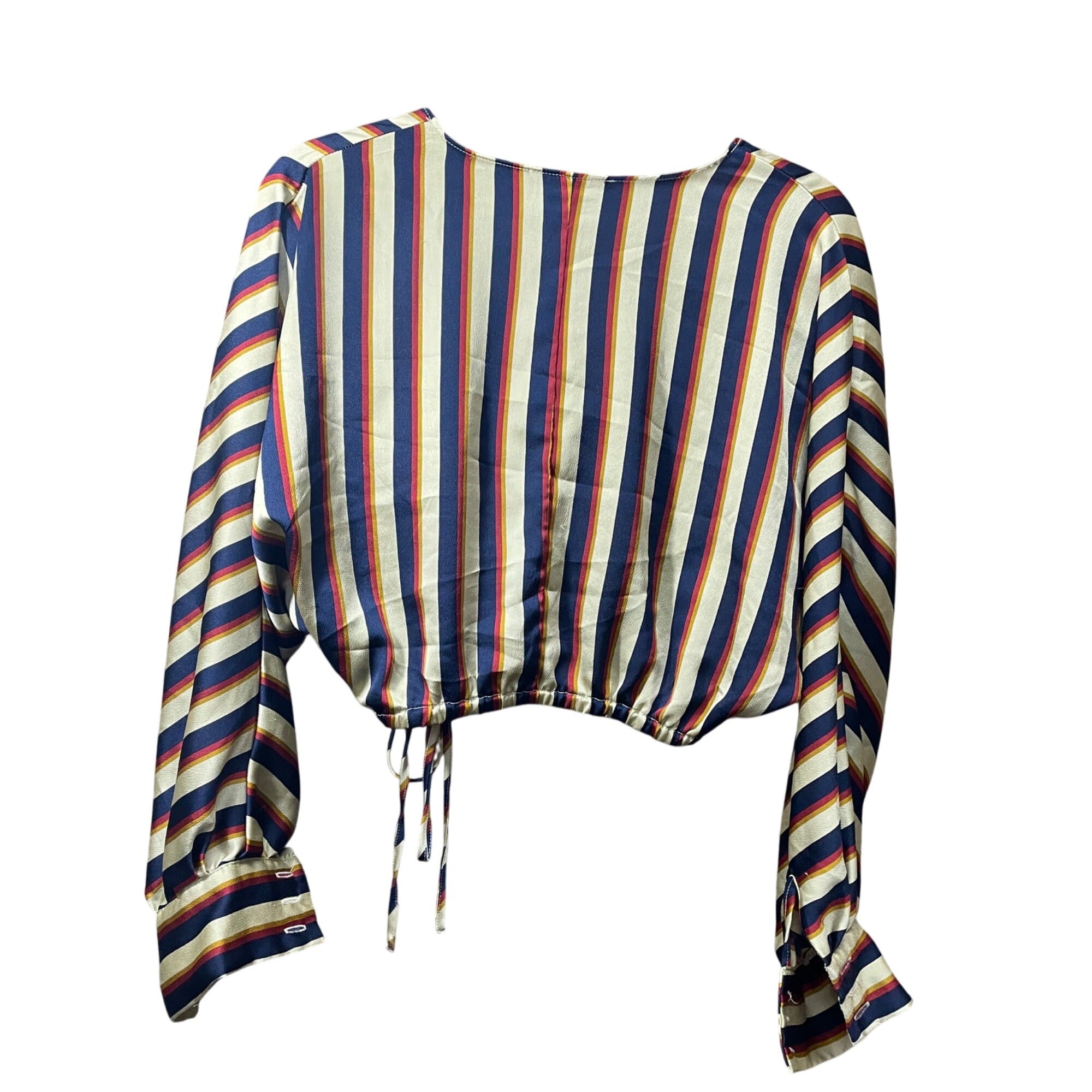 Forever 21 Womens Multicolor Striped Long Sleeve Tie-Waist Crop Top XS