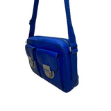 Fossil Women’s Blue Leather Adjustable Strap Dual Front Pockets Crossbody Bag