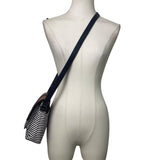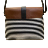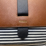 Fossil Women’s Brown Leather Black & White Striped Canvas Crossbody Bag