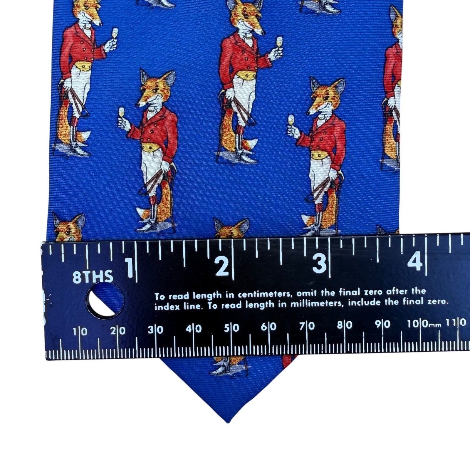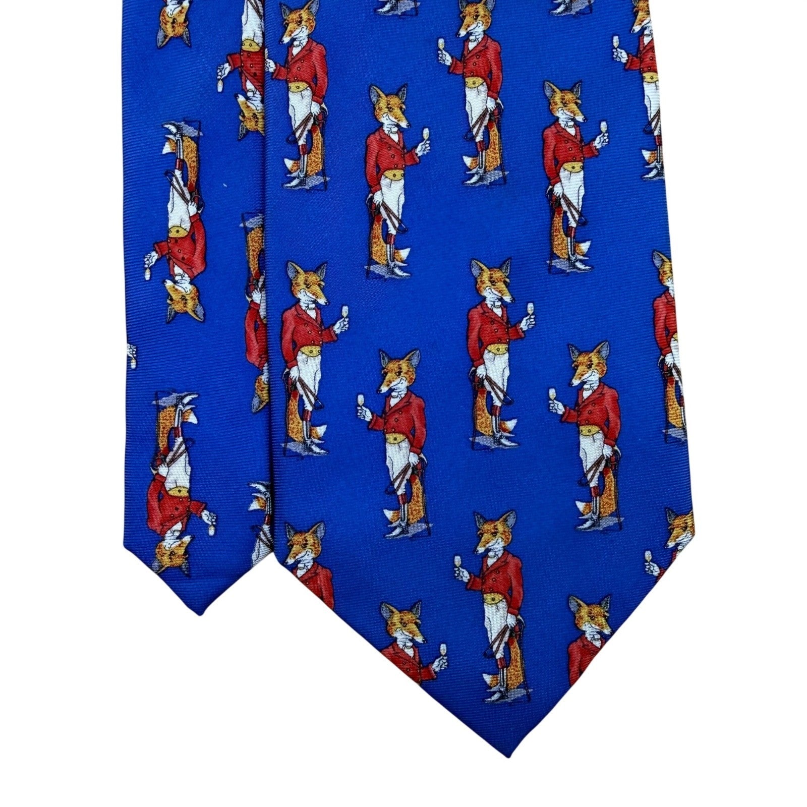 Fox & Chave Mens Blue 100% Silk Novelty Tie With Fox Hunt Pattern Hand Made