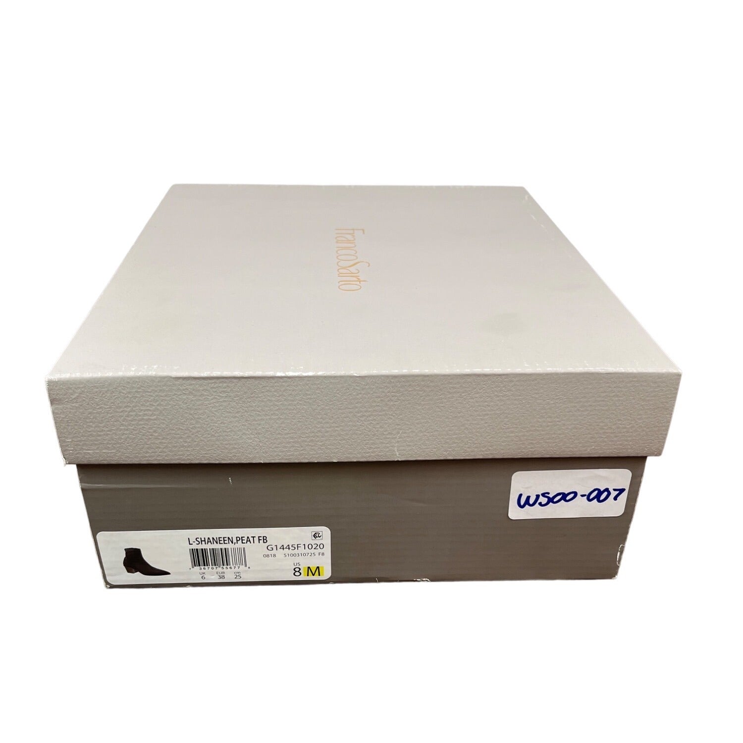 Franco Sarto Women's Shaneen Peat Black Leather Pointed Toe Ankle Booties in size 8. These booties redefine style with their pointed toe design and premium leather craftsmanship, perfect for any fashion-forward woman.