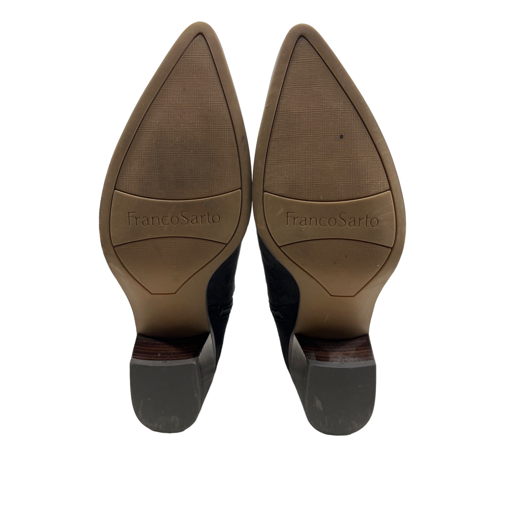Franco Sarto Women's Black Leather Shaneen Peat Pointed Toe Ankle Booties Size 8