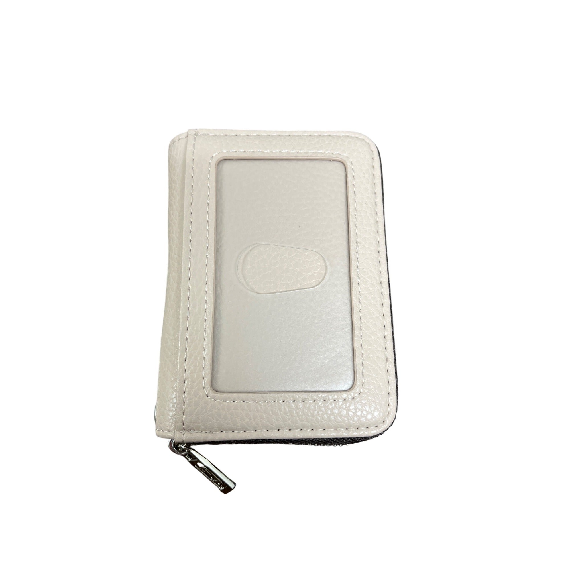 FurArt Unisex Beige Leather Zipper Card Holder Wallet With Keychain Attachment Compact Design