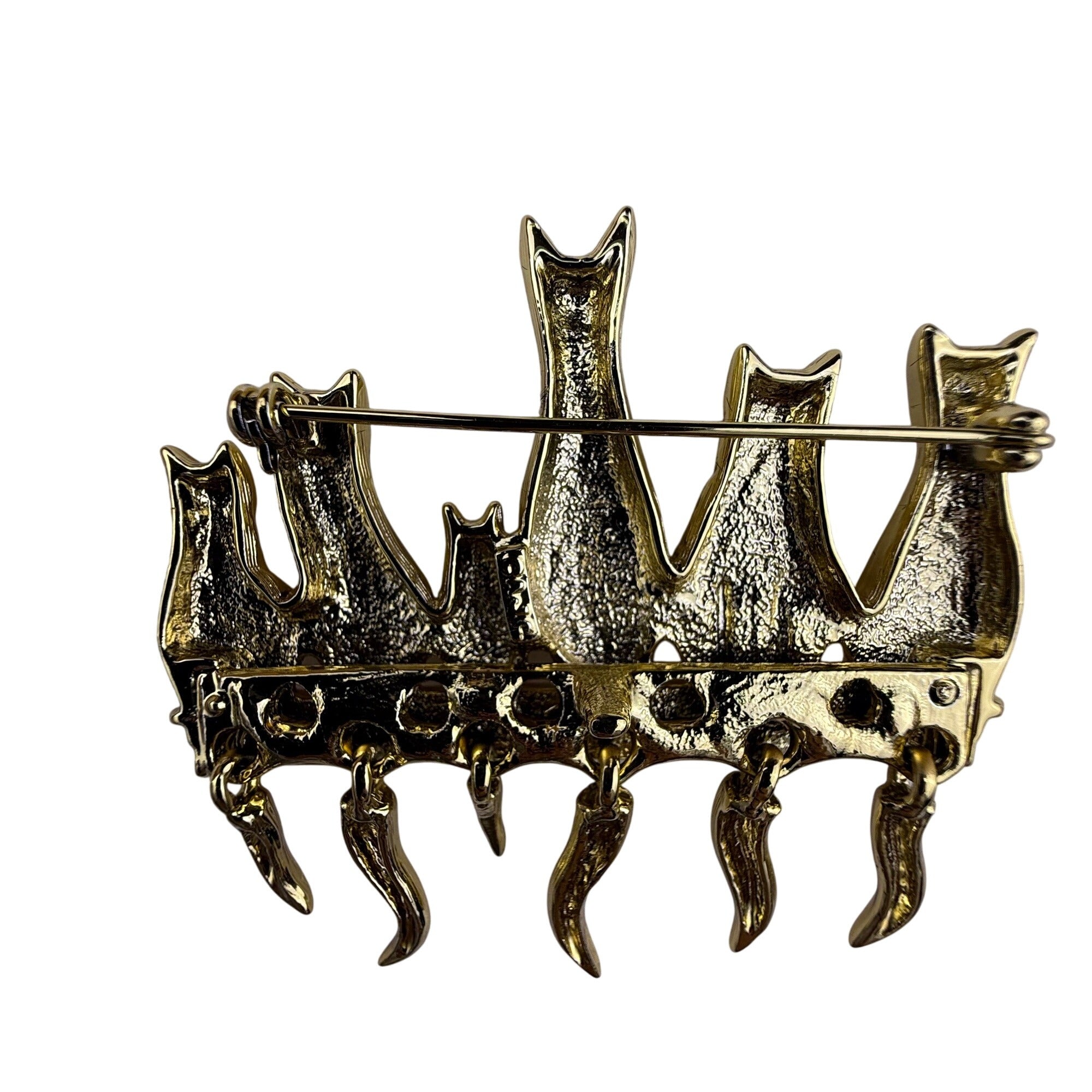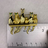 Gold Tone Cat Family Brooch Jewelry Green Eye Accents Vintage Style Pin