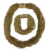 Gold Tone Multistrand Seed Bead Womens Collar Necklace & Bracelet Vintage Set