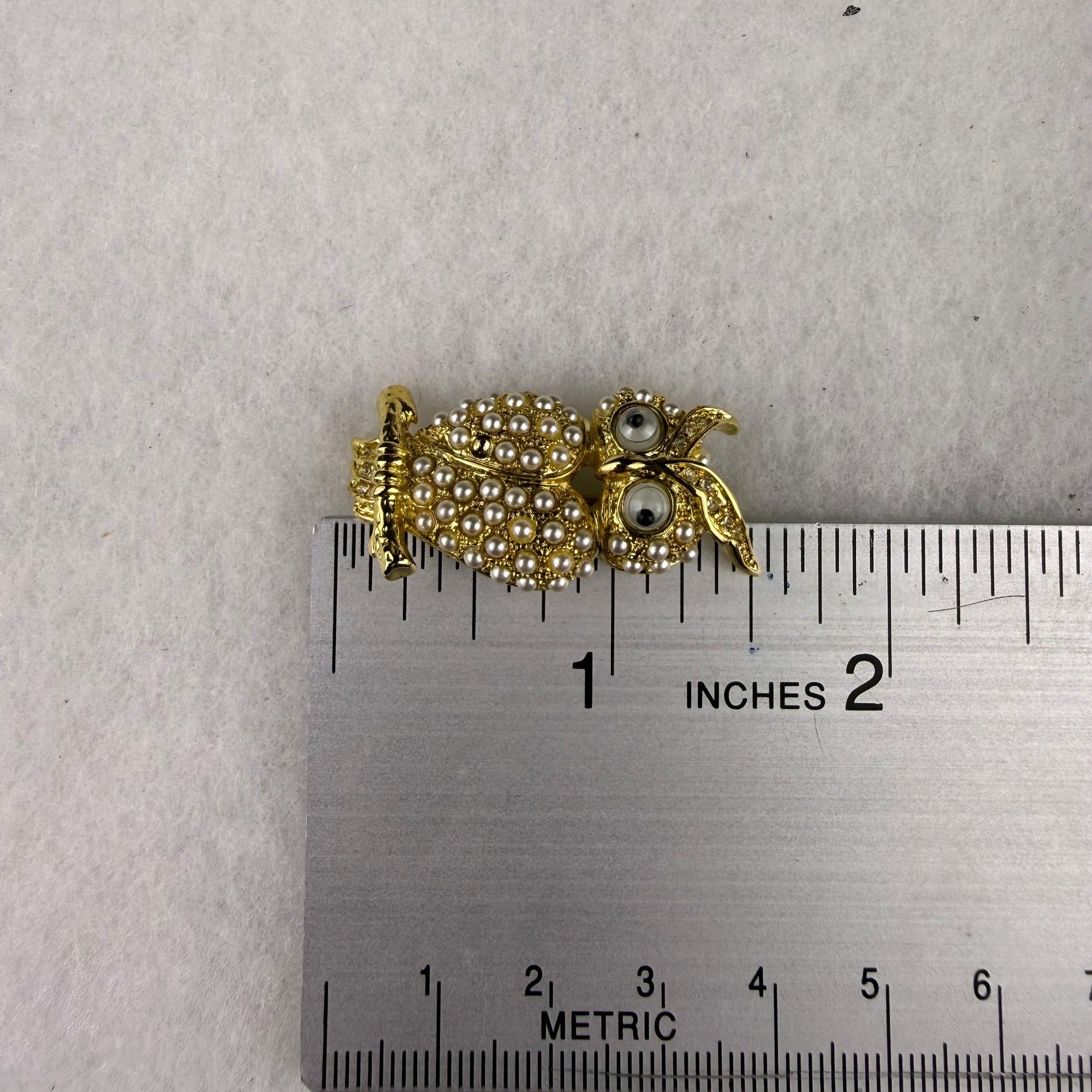Gold Tone Vintage Owl Brooch Pin Womens Faux Pearl Studded Jewelry
