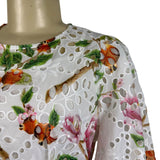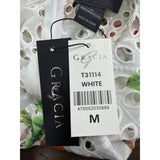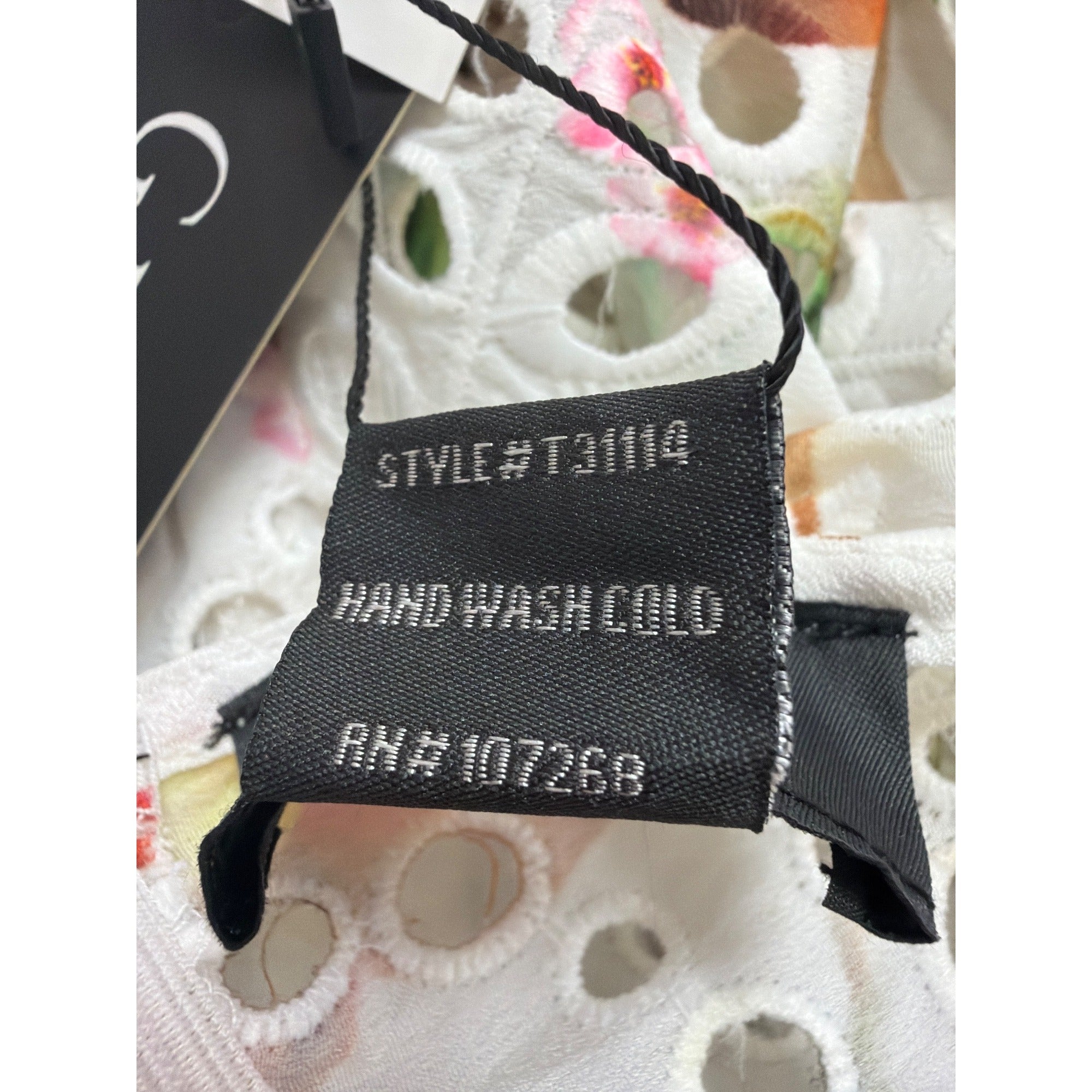 Gracia Womens White Floral Eyelet Lace Peplum Top Size M