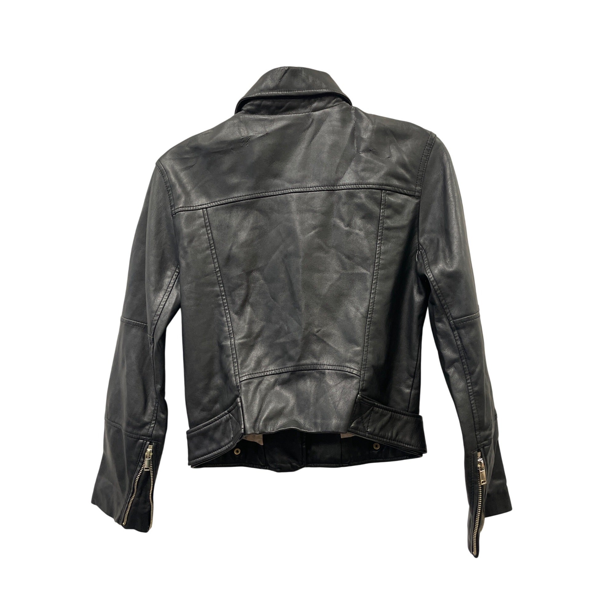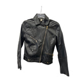 H&M Divided Womens Black Faux Leather Biker Jacket Zip & Snap Closure Size 6