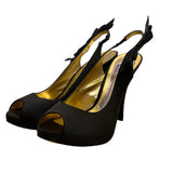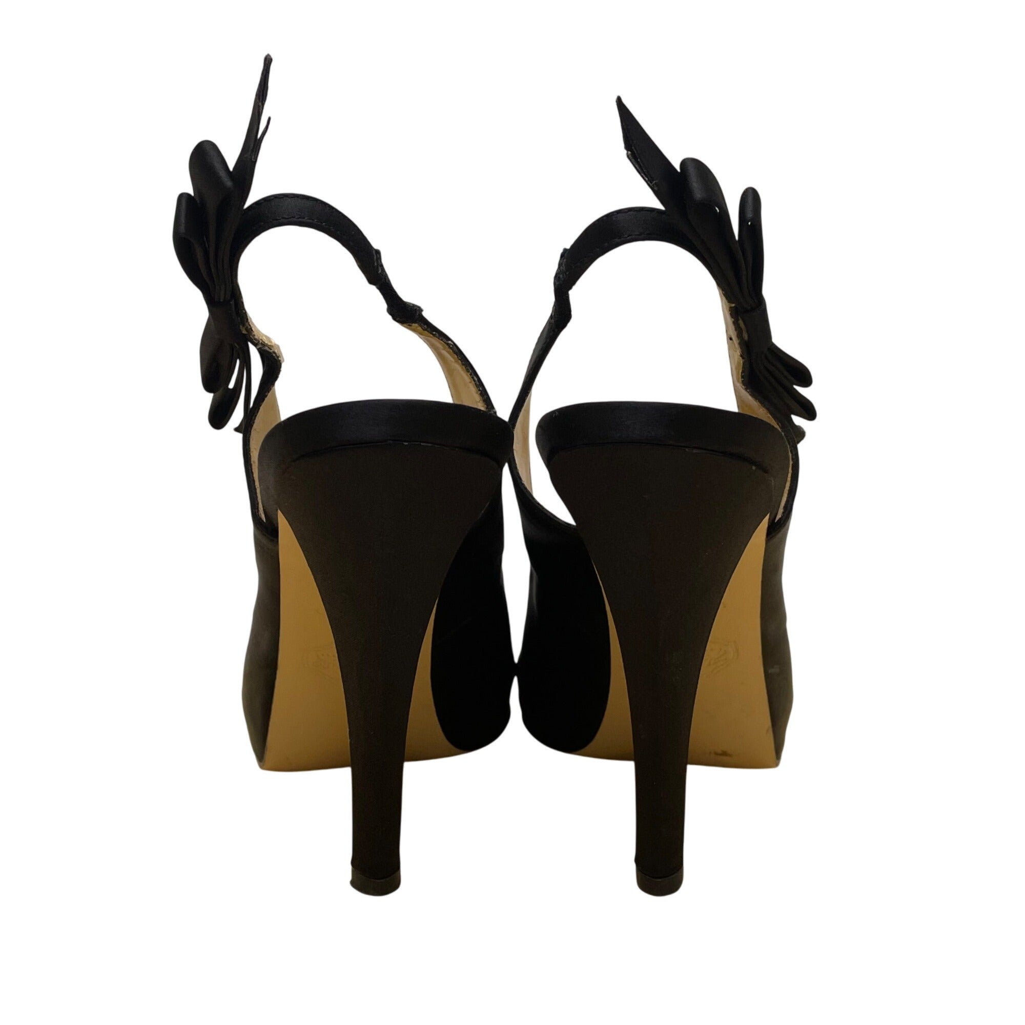 Hale Bob Womens Black Satin Bow Detail Slingback Peep-Toe Heels Size 8.5M