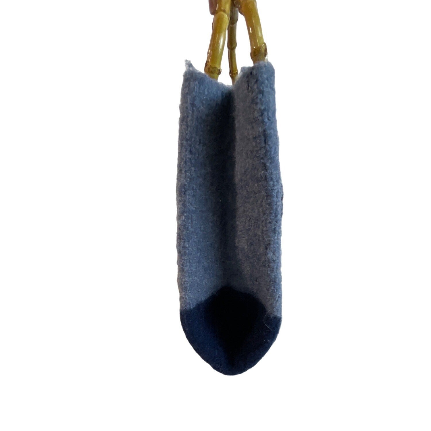 Handcrafted Women's Blue Wool Bamboo Handle Satchel Bag Sz M