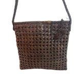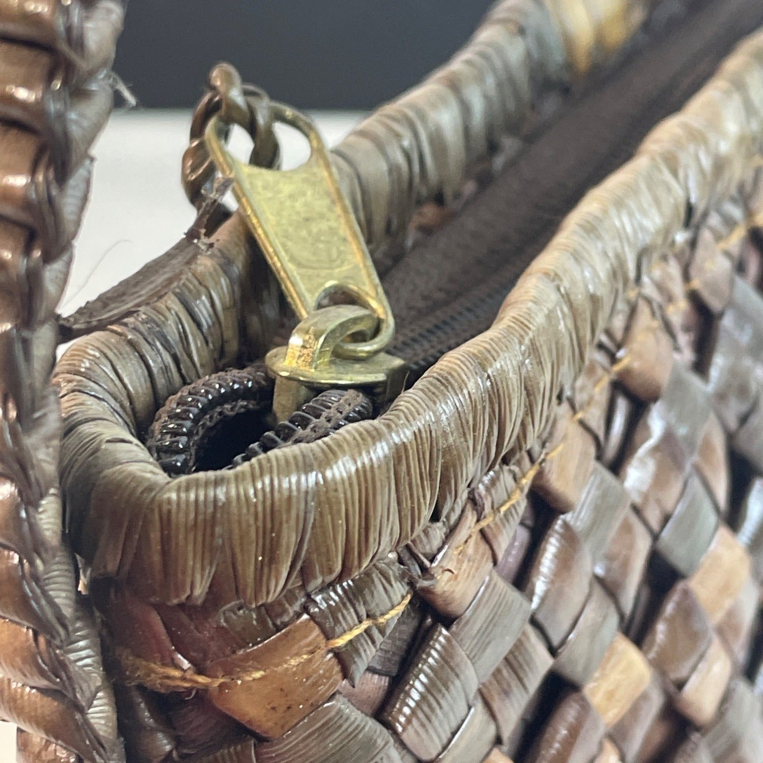 Handcrafted Women's Brown Woven Rattan Square Shoulder Bag Sz M
