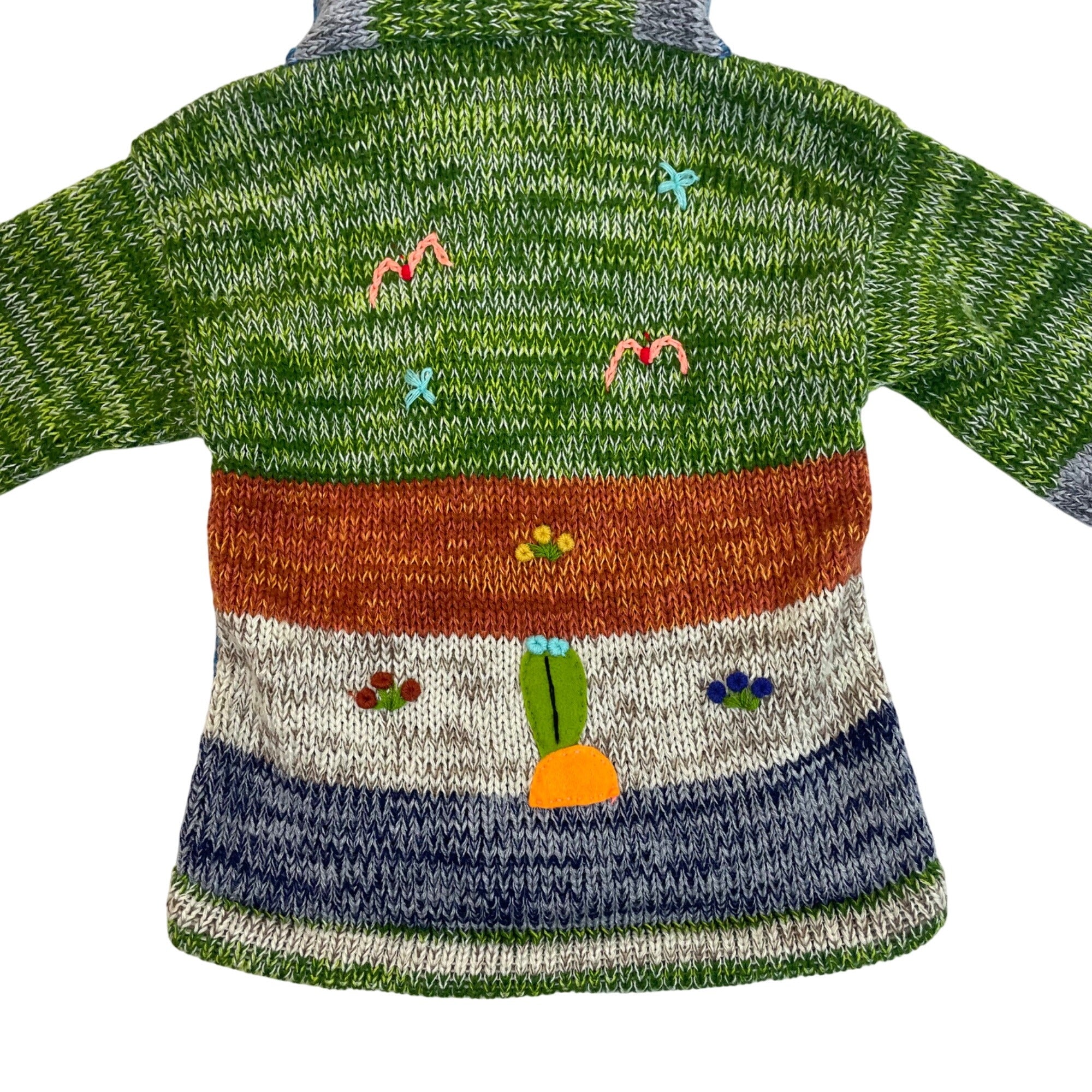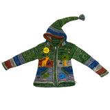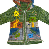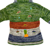 Handmade Green Multicolor Knit Hooded Cardigan With Animal Jungle Appliqués