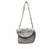 Handmade Pearl & Metal Beaded Handbag With Shoulder Strap Elegant Silver Accent
