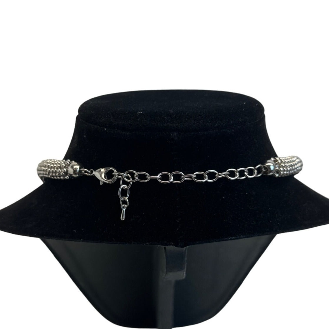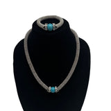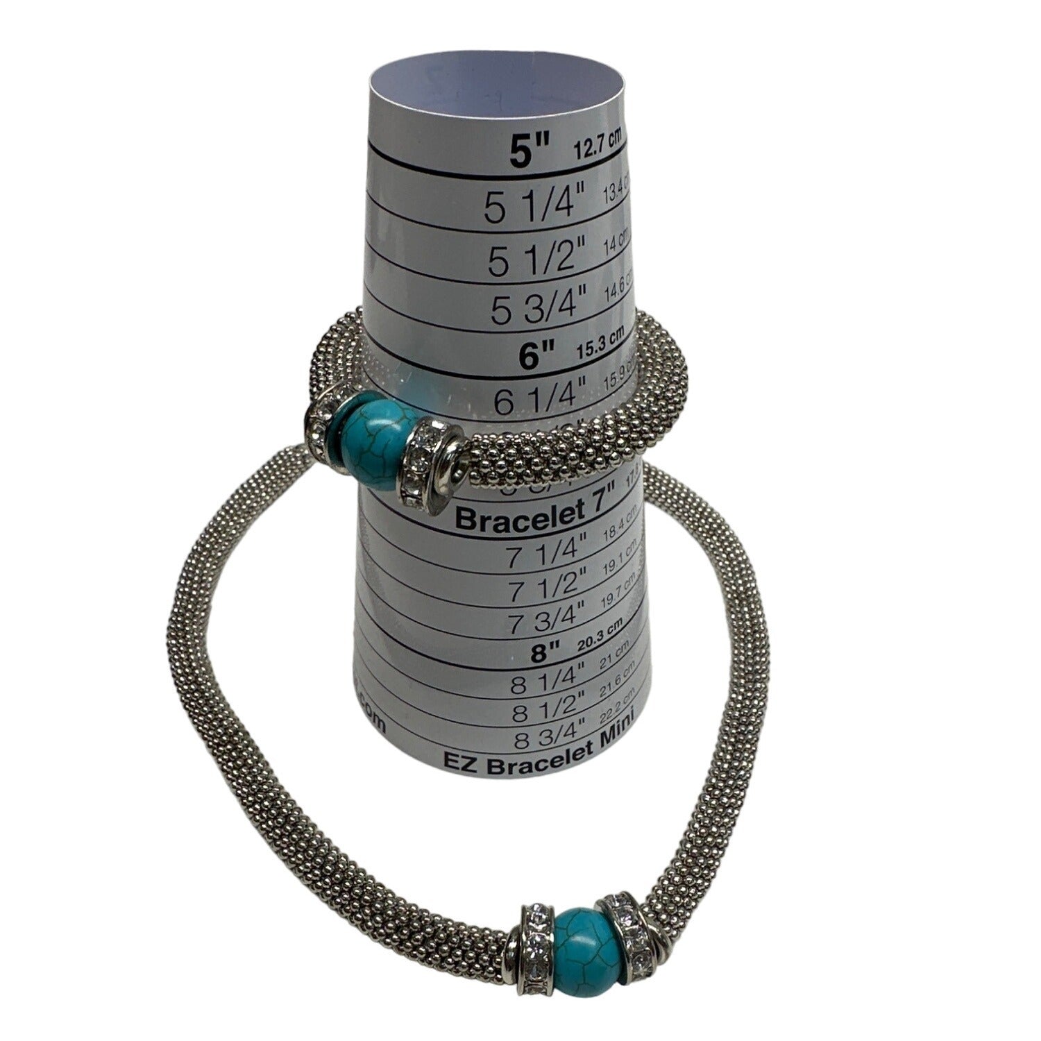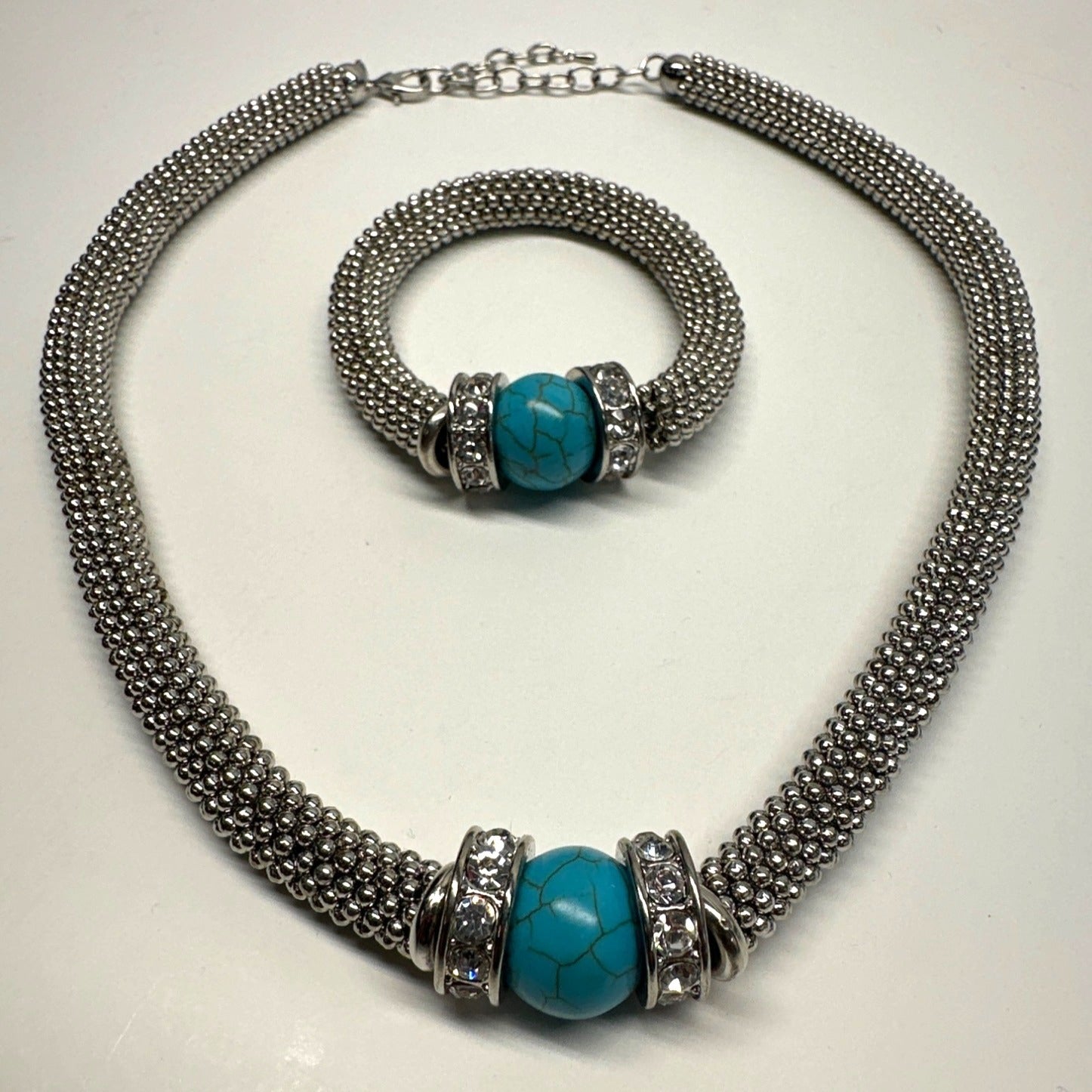 Heavy Turquoise Cristal Accents Silver Tone Necklace and Bracelet Set - 22in