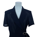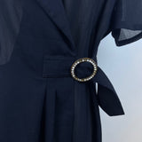 Hongxiang Clothing Black Wrap Sheer Short Sleeve Mid-Length Belted Dress