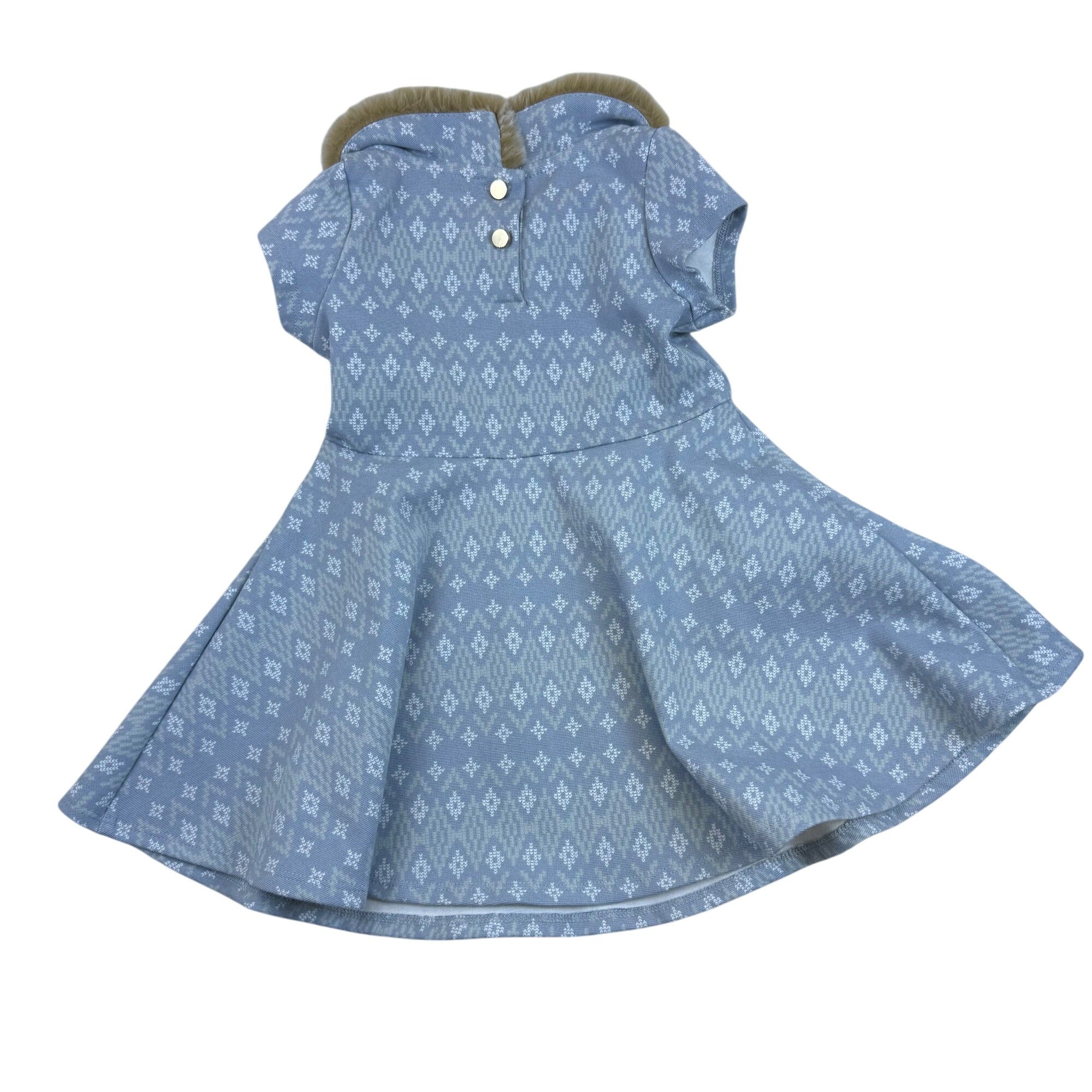 Hope & Henry Girls Blue Organic Blend Dress Faux Fur Collar 12-18M Winter - New