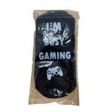 These black cotton socks feature bold white text reading "I'M BUSY GAMING" with a gaming controller graphic. They are unisex and one size fits most, offering comfort and a casual style suitable for everyday wear. The cotton material ensures breathability and durability. Packaging is intact for gift-ready presentation.