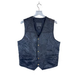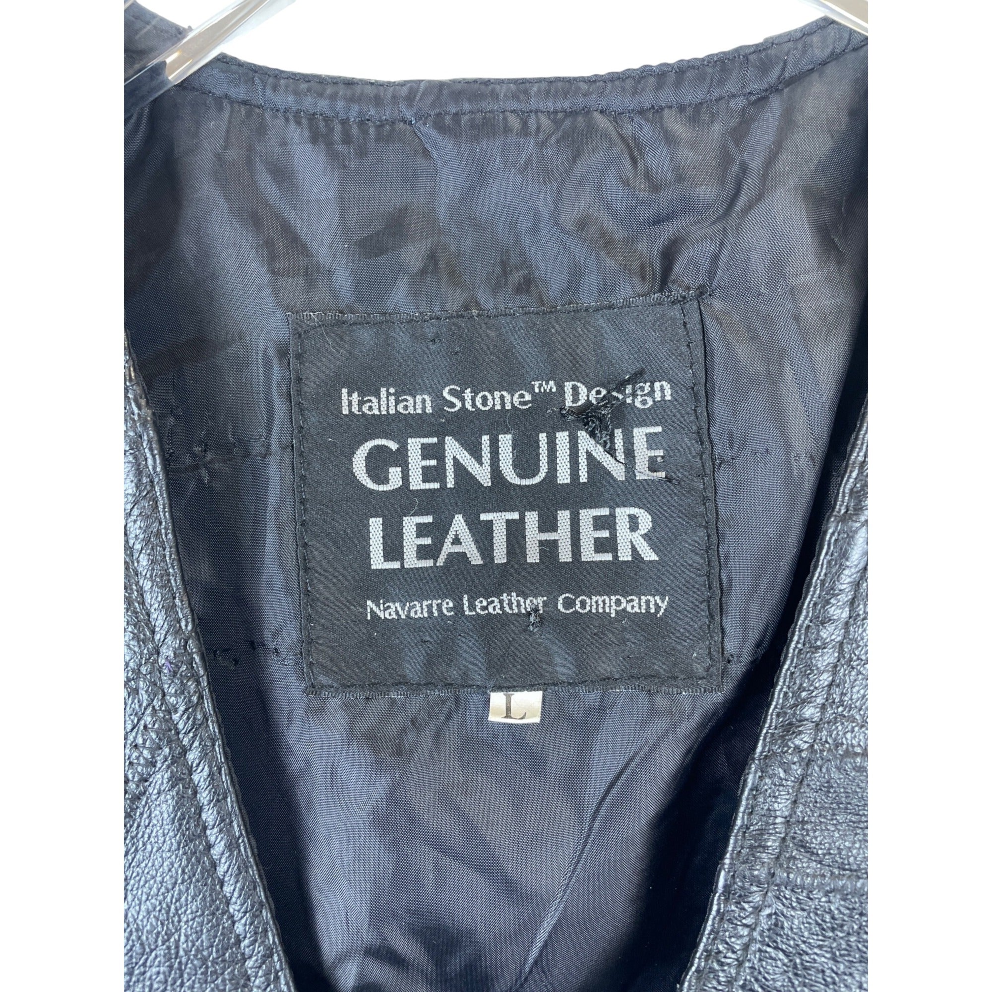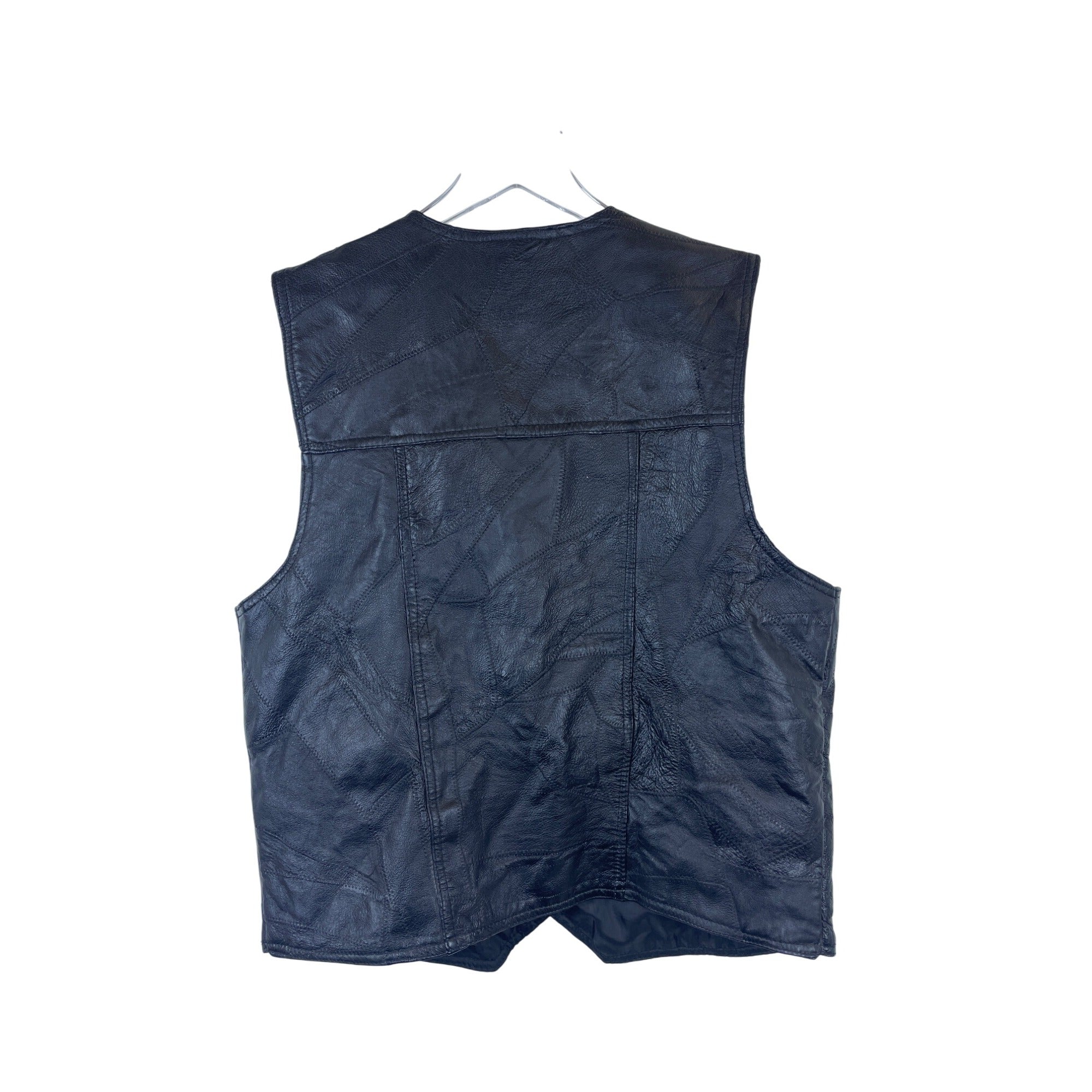 Italian Stone Design Mens Black Genuine Leather Vest Snap Pockets Lined Patchwork Style Large