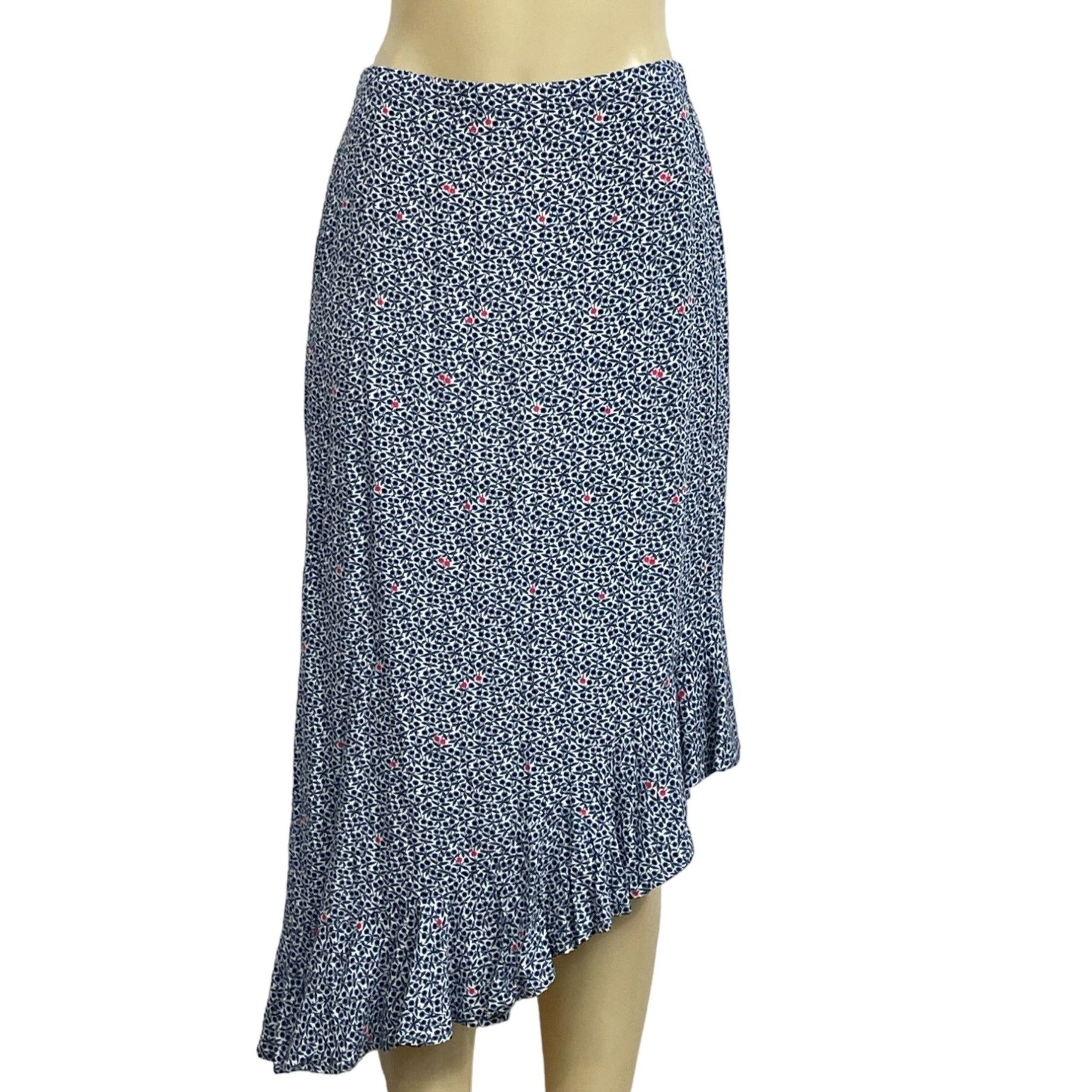 J.Crew Mercanti Womens Asymmetrical Ruffle Hem Skirt S Blue Floral Viscose New