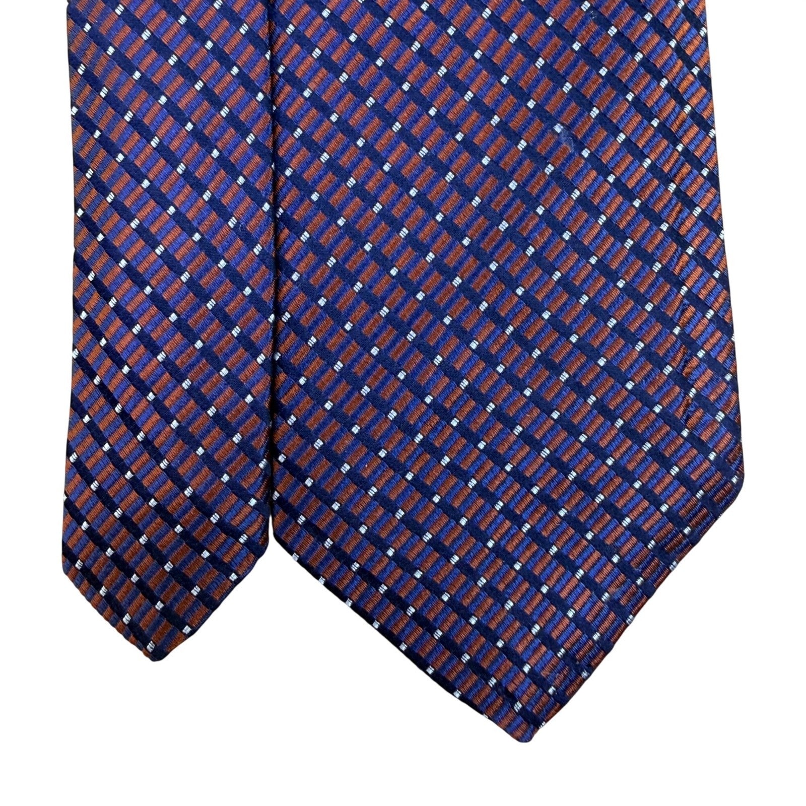 J Press Mens Blue & Orange 100% Silk Necktie Geometric Pattern Made In USA