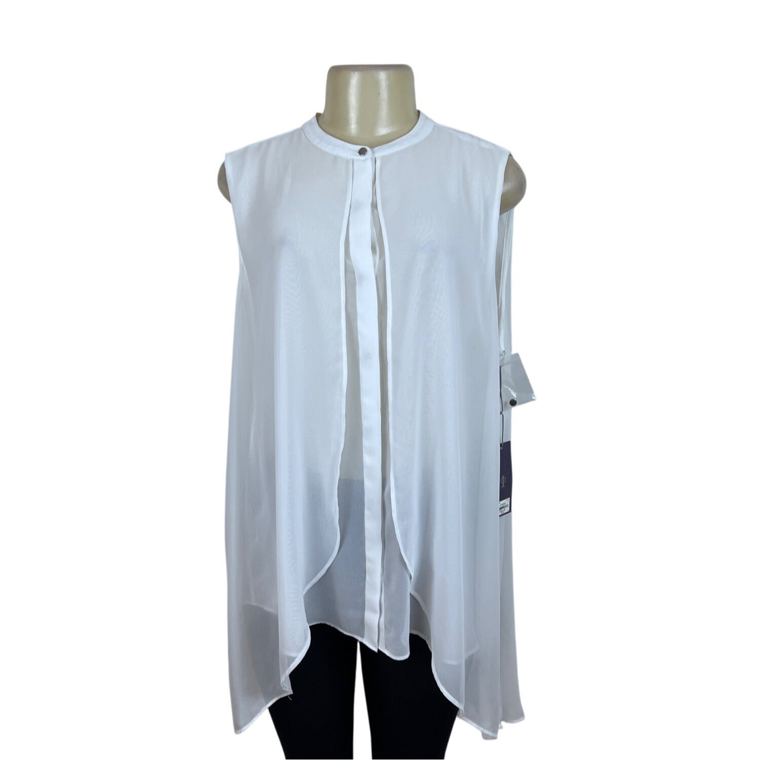Jennifer Lopez Women's White Sheer Sleeveless Blouse Loose Fit Size XL