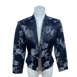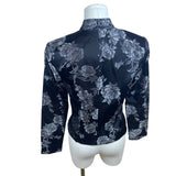 Jessica McClintock Women's Black Floral Print Satin Jacket Size 4