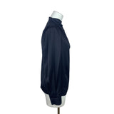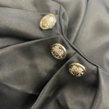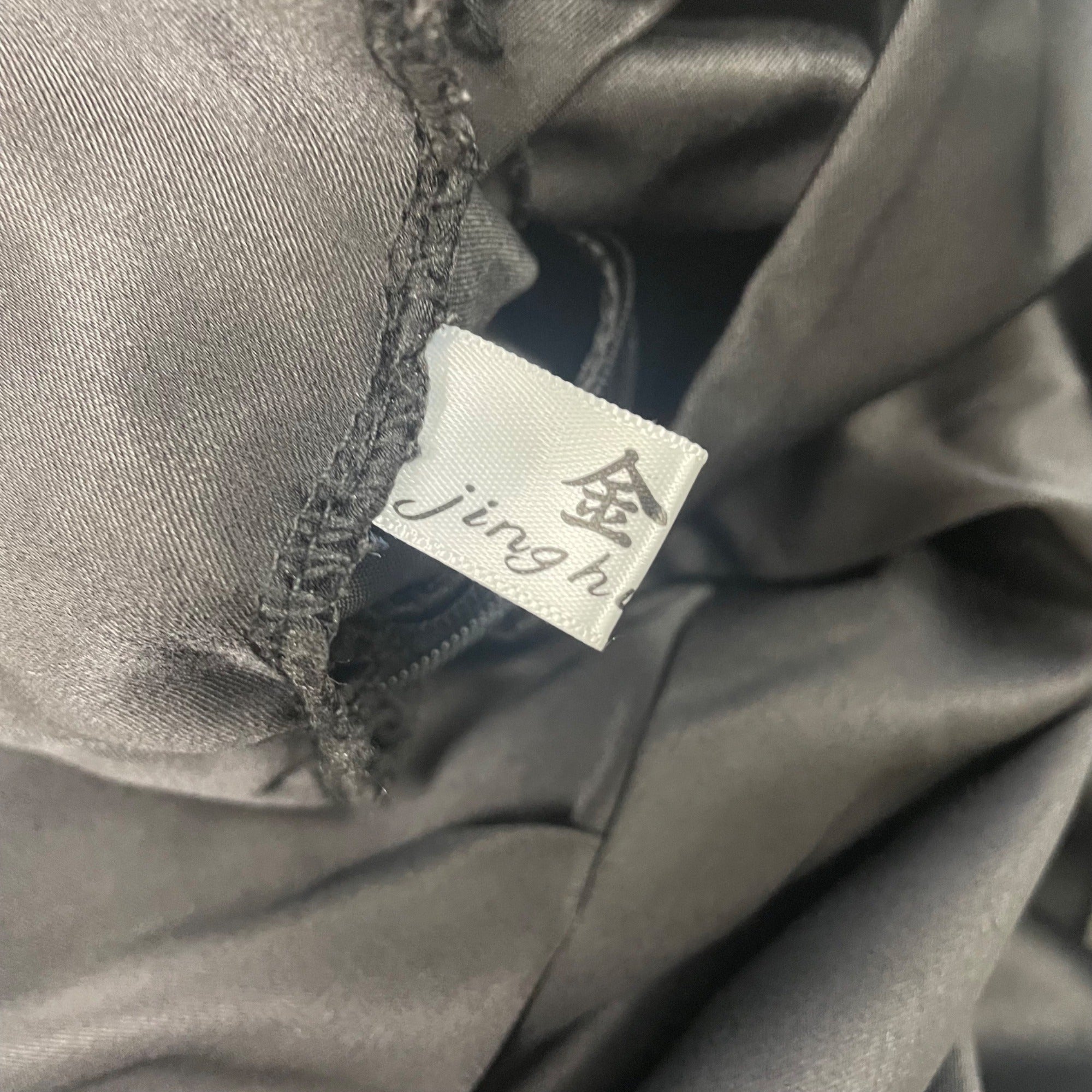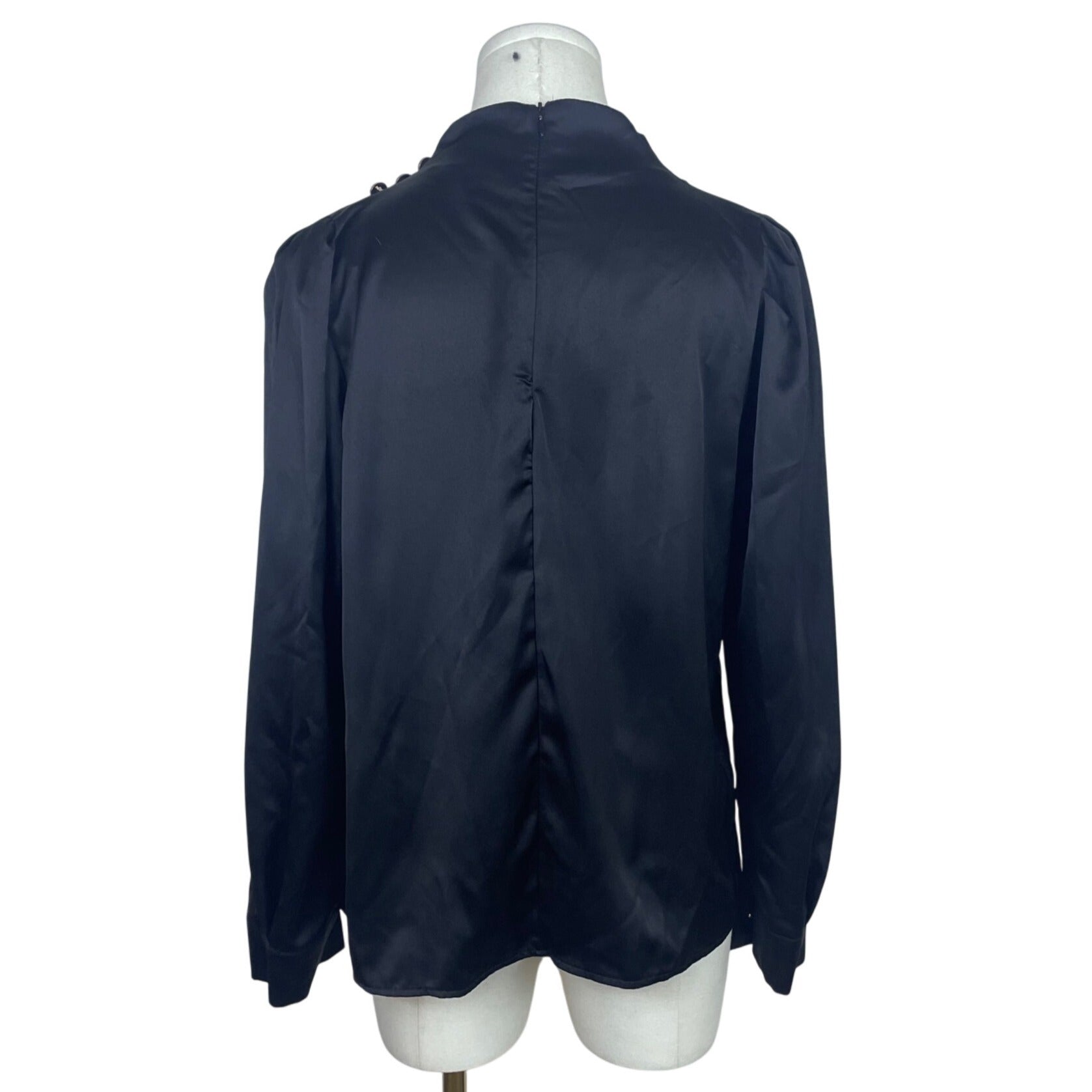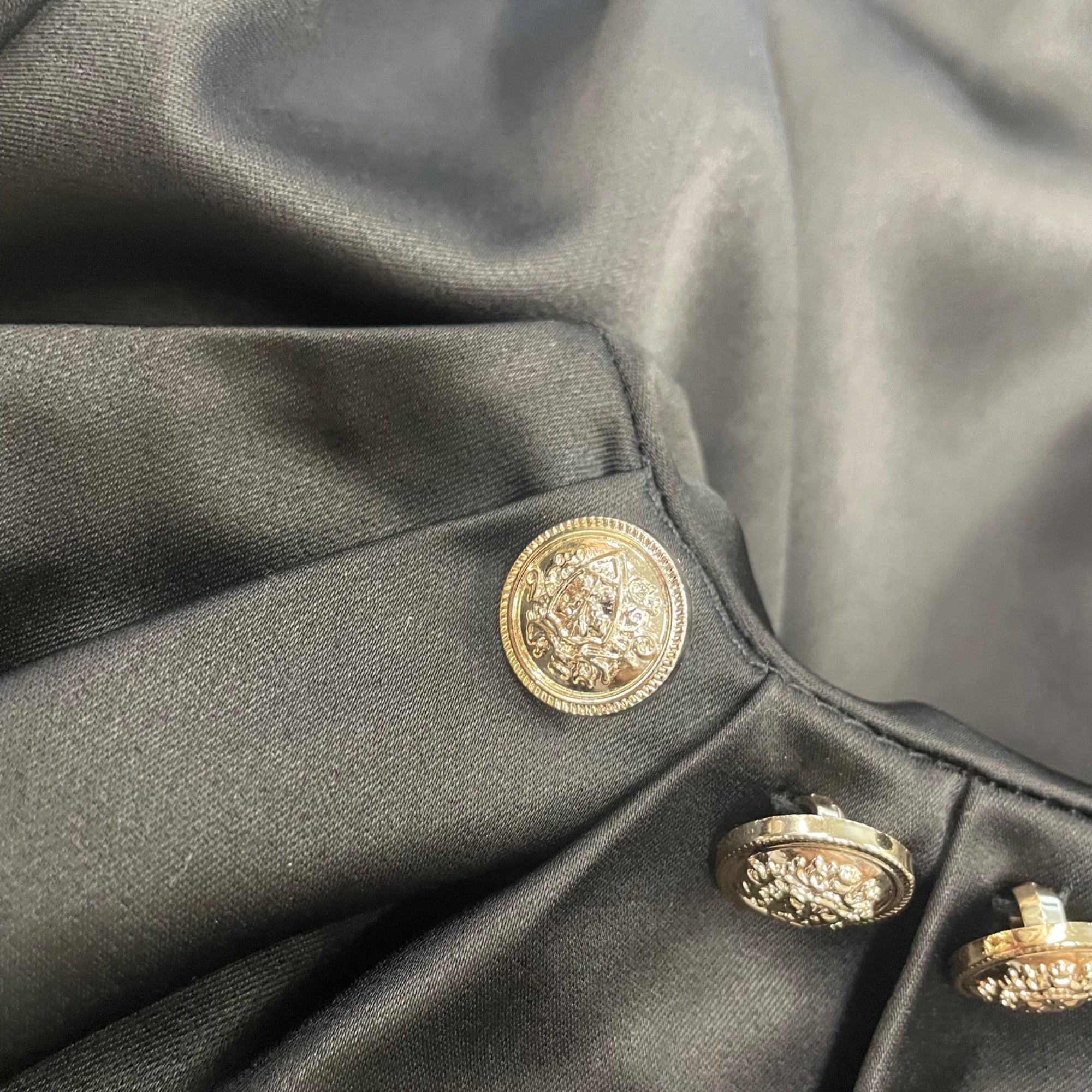 Jinghui fushi Women's Black Satin Button Embellished High Neck Long Sleeve Blouse