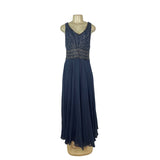 Jkara Women’s Navy Blue Beaded Sleeveless Evening Gown With Sheer Jacket Size 12