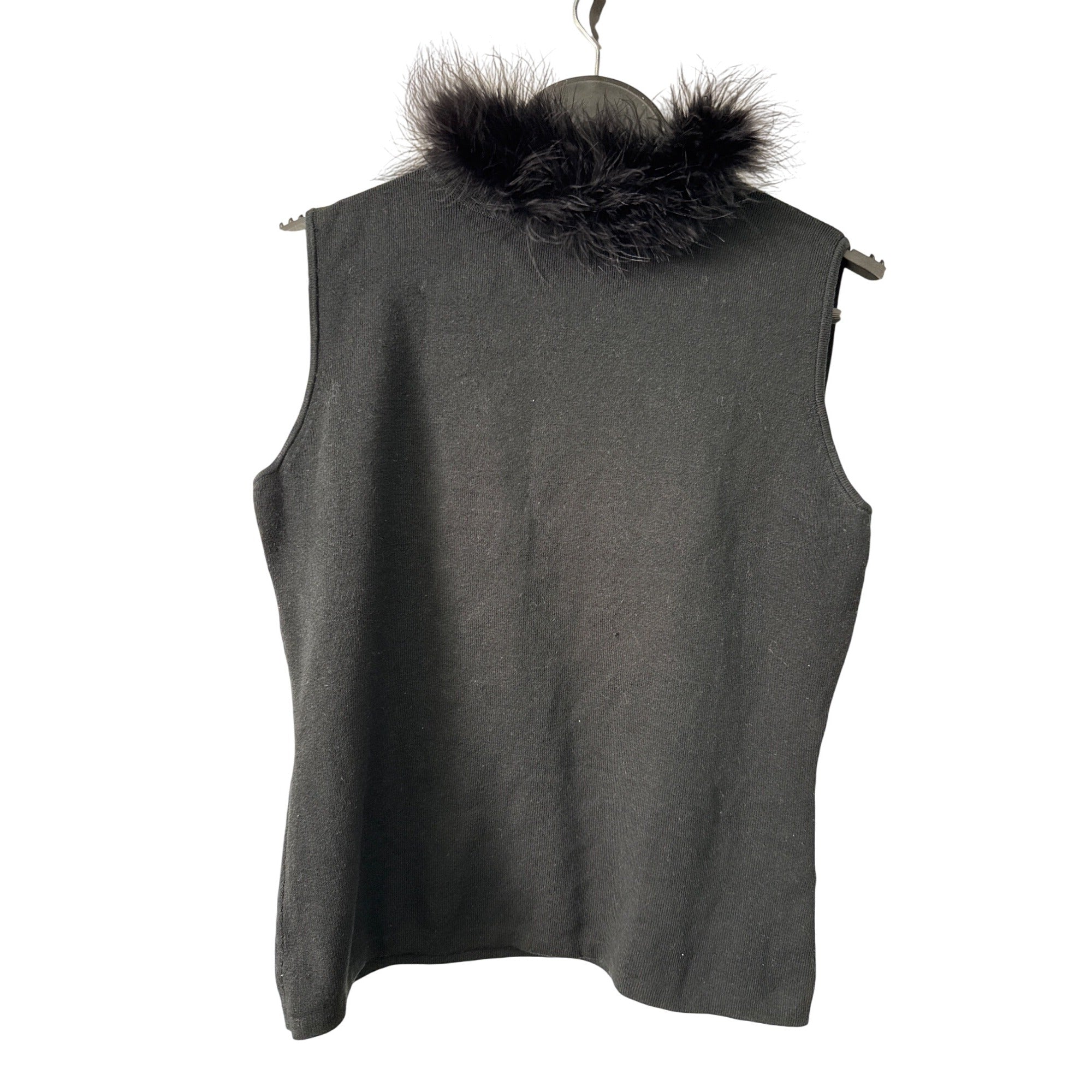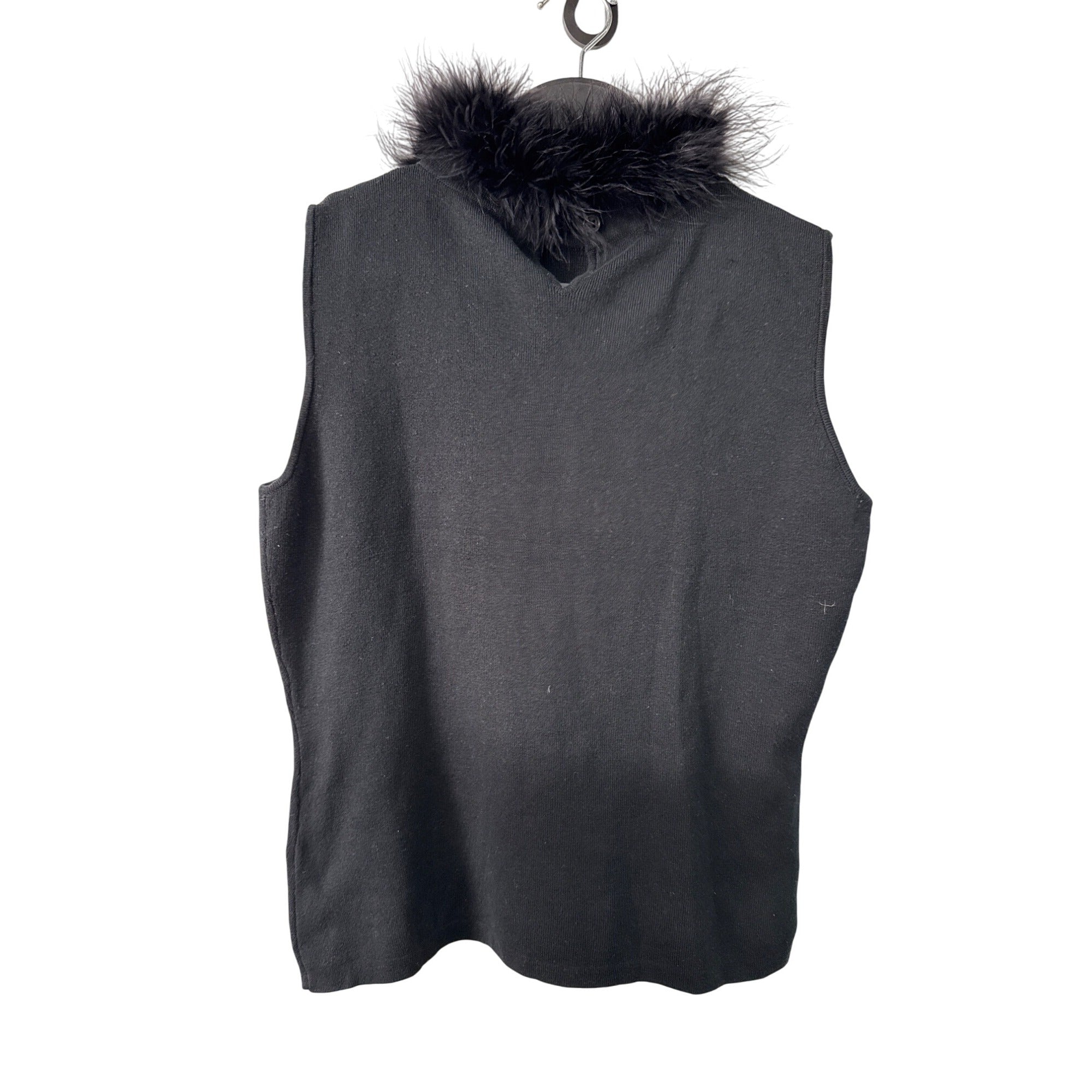 Joseph A. Womens Black Silk Blend Faux Fur Collar Sleeveless Sweater Top Size L