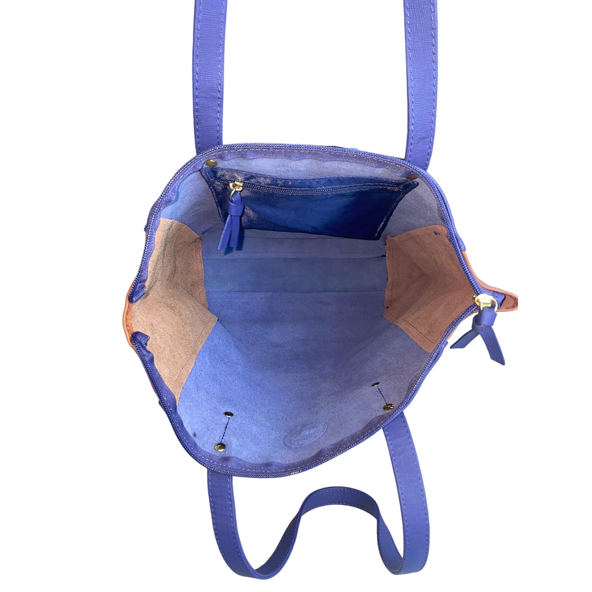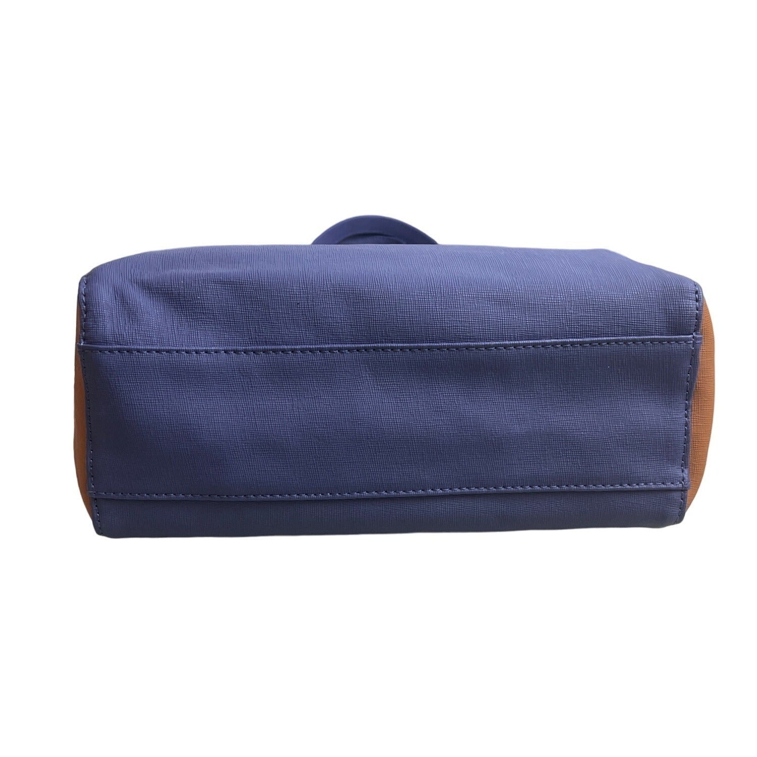 Joy Mangano Brown And Blue Leather Colorblock Tote Bag Sz L - NWOT