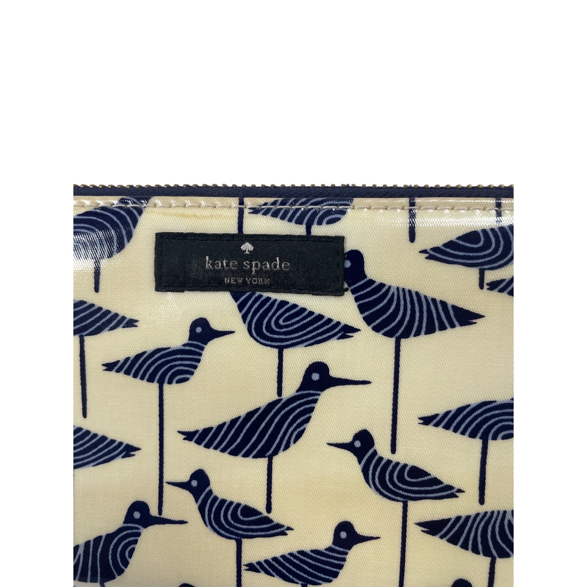 Kate Spade New York Bird Print Zip-Around Wallet Beige & Navy