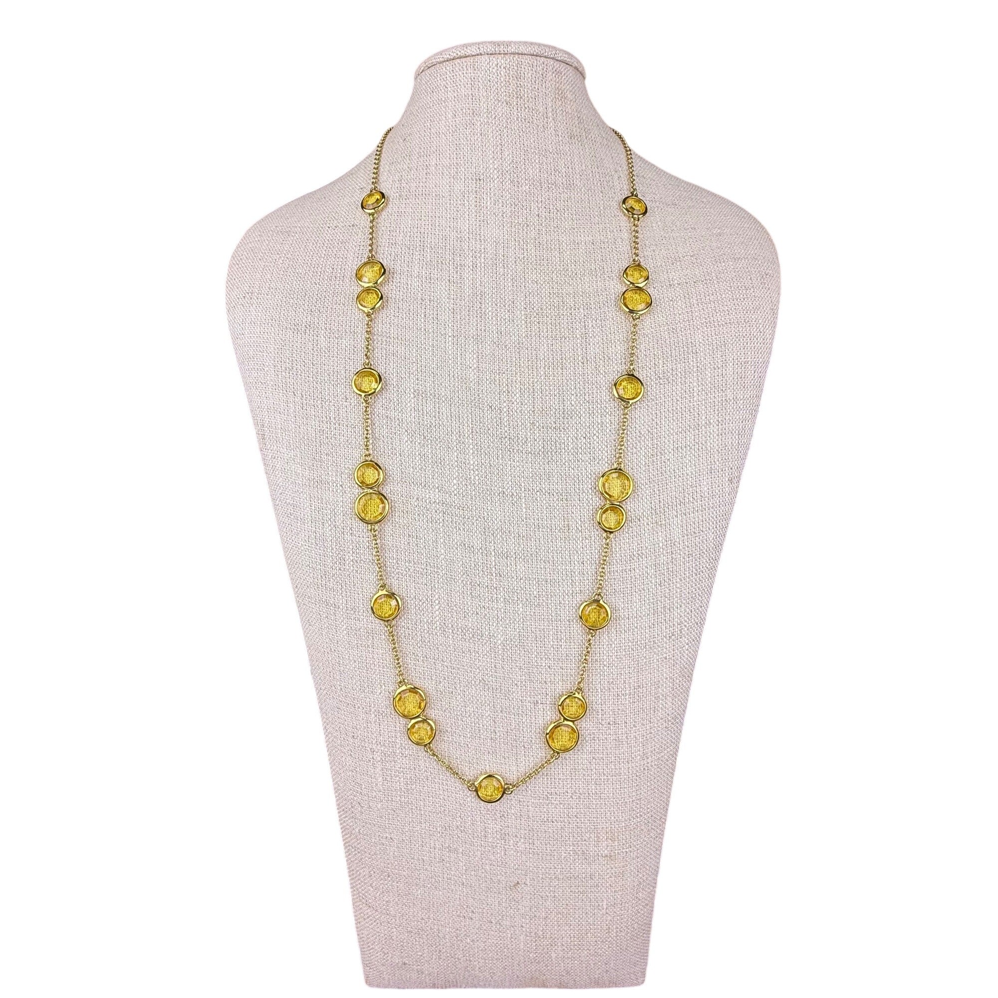 Kate Spade New York Womens Gold Tone Long Necklace Yellow Faceted Stones