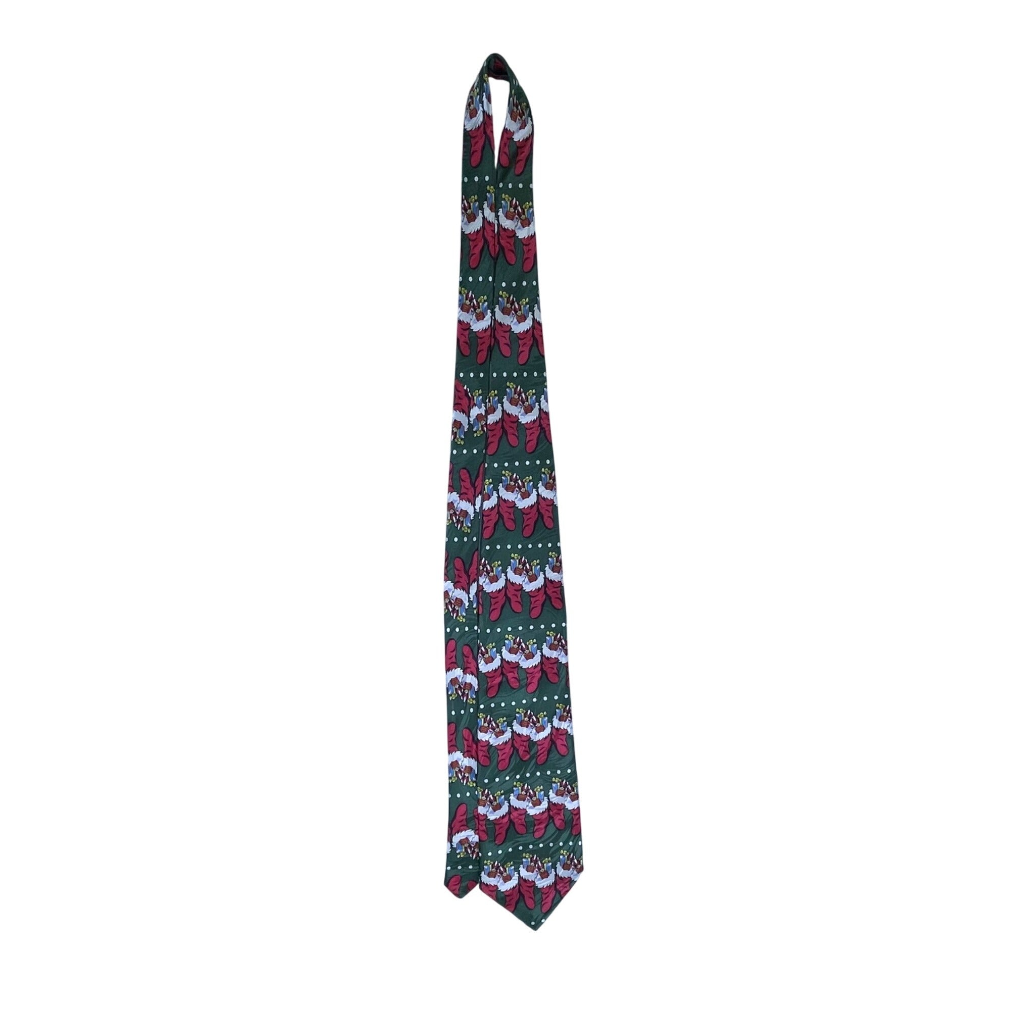 Keith Daniels Mens Green Polyester Christmas Tie Holiday Stocking Pattern