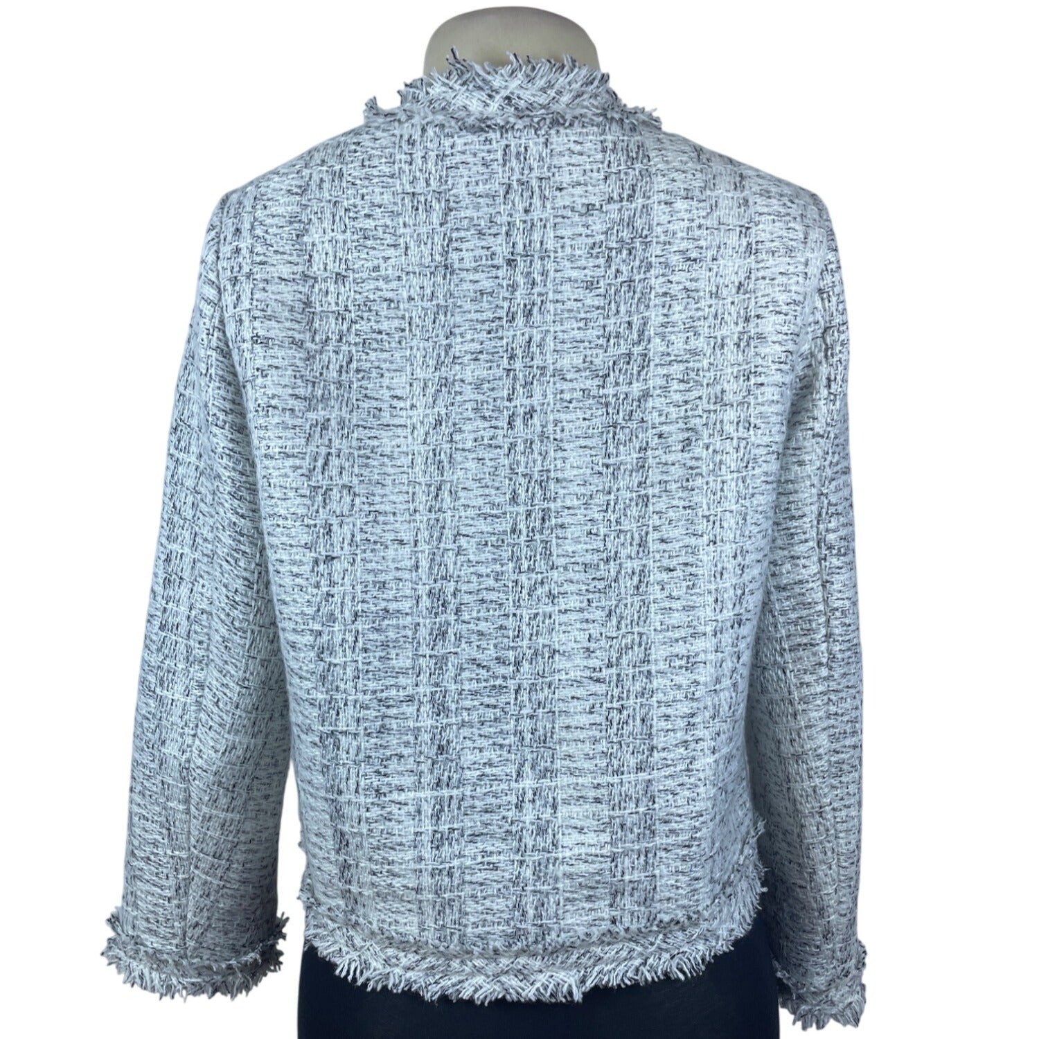 Kimmon Lee Women's Gray Tweed Fringed Button Up Cropped Jacket Size S