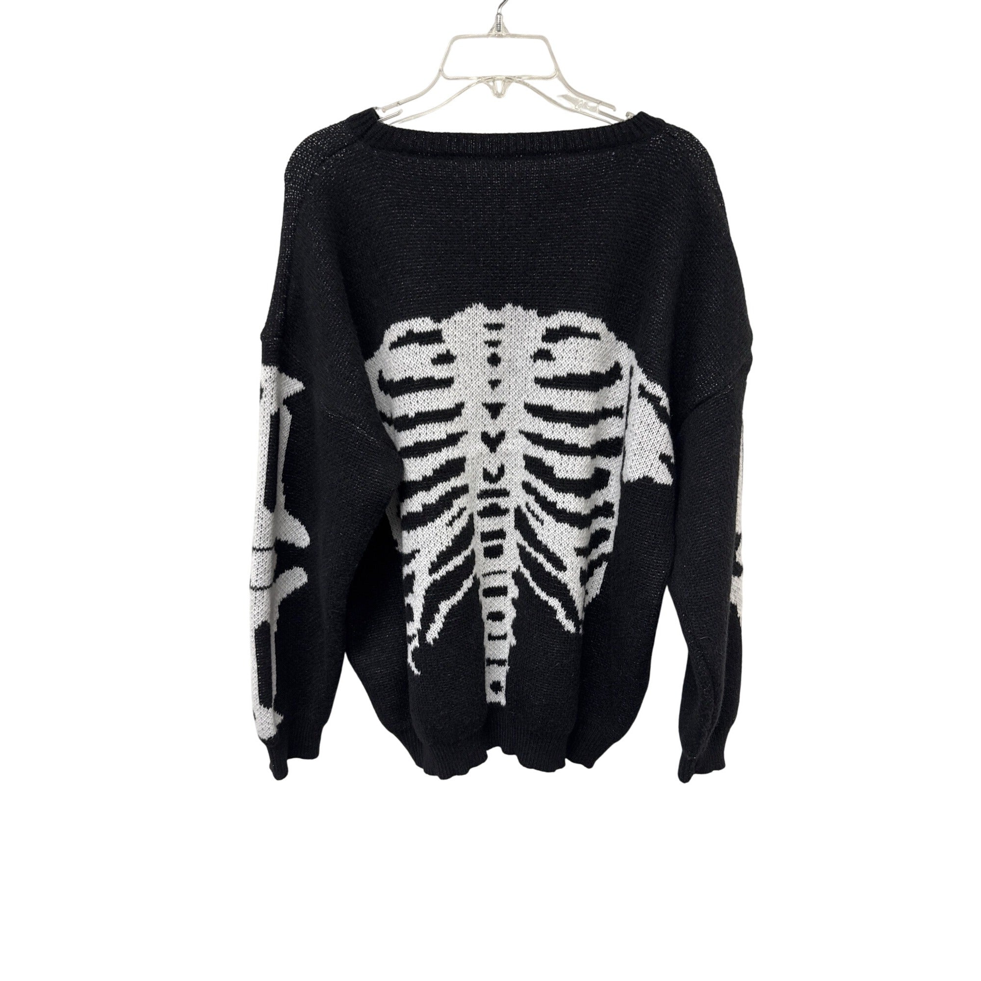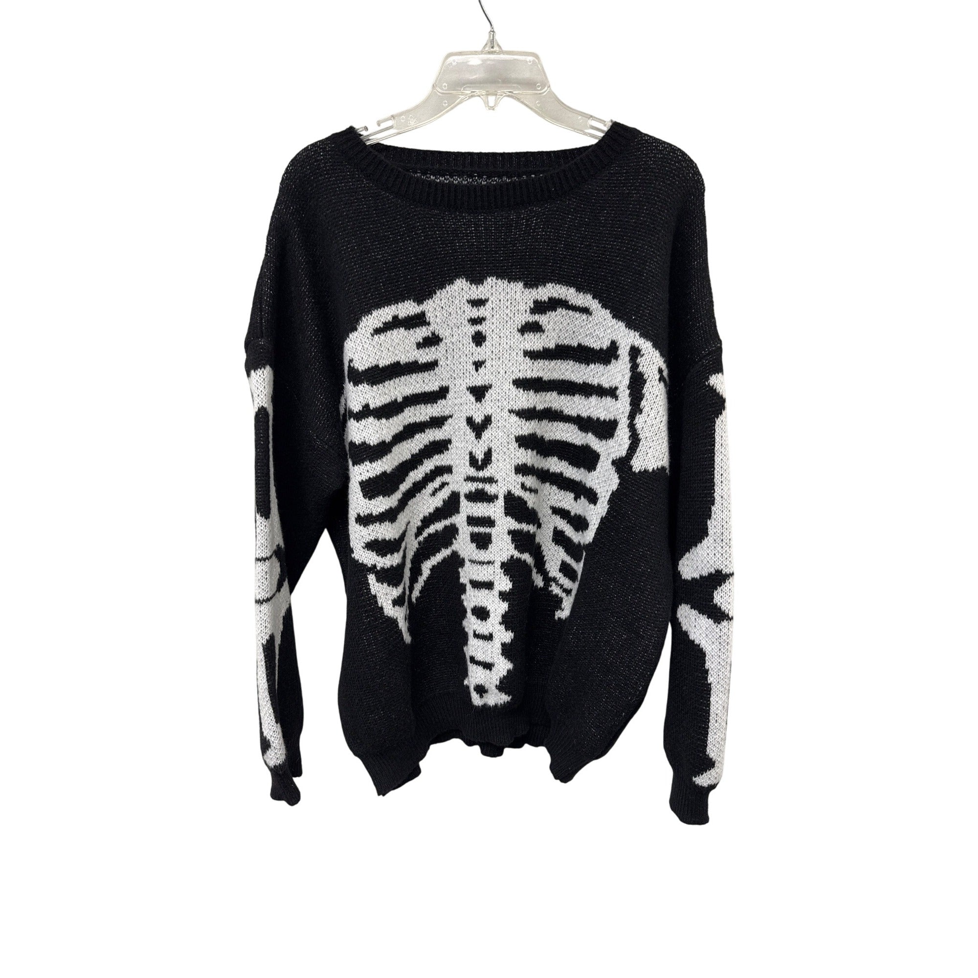 Knitted Skeleton Graphic Unisex Sweater Black/White Polyester Ribbed XL Cosplay Top