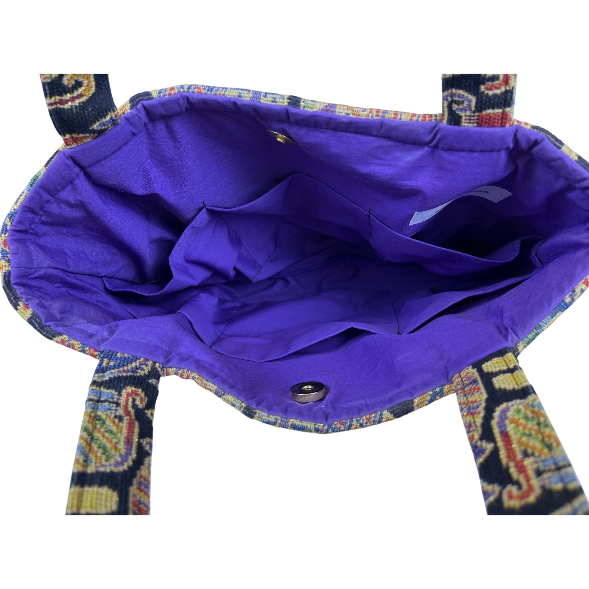 Krexcreations Womens Multicolor Cotton Tapestry Cat Print Tote Bag Durable & Spacious