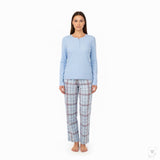 L.L.Bean Women’s Light Blue Henley Shirt & Plaid Pajama Pants Set Size S - New